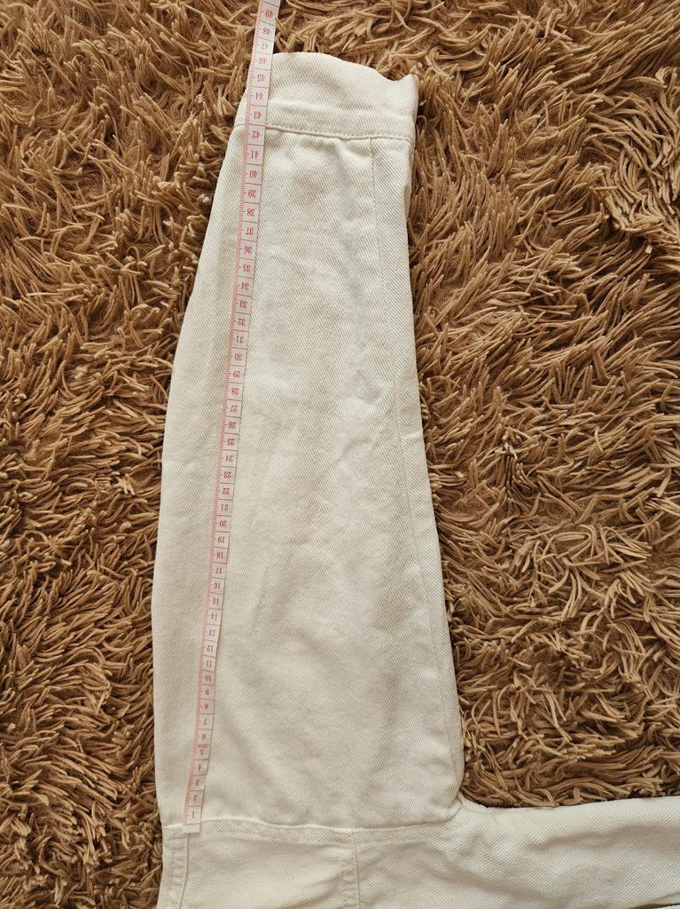 Надо брать свой размер. На наш 44-46-й - L очень большой. Это скорее рубашка, а не куртка. Ткань тонковата . К тому же цвет не белый, даже не молочный, а ближе к желтовато- бежевому. Попадаются вкрапления чёрной нитки. Бирки никакой не было.
