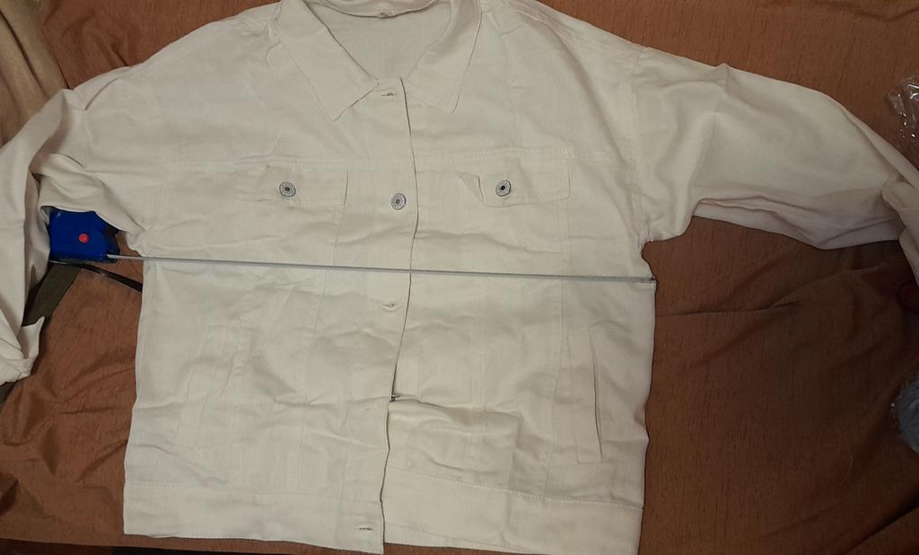 Джинсовочка хорошая, тонкая, но рукава короткие. Ношу 44 р, заказывала М. При заказе ориентировалась на отзывы, там девушка замеры оставляла. Так вот, у нее длина рукава 50 см, а на моей 46 см. Мой рост 158 см, куртка мне ровно по талию. Если брать на размер больше, будет очень широкая.