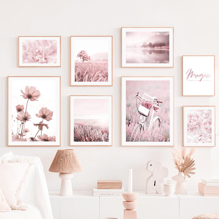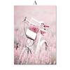 Розовый пион, озеро, велосипед, дерево, восход солнца, цветочный настенный художественный холст, картина, плакаты на скандинавскую тему и принты, настенные панно для декора гостиной