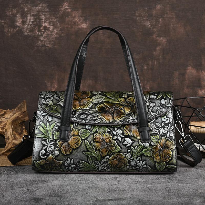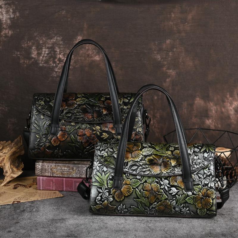 Johnature Женская сумка из натуральной кожи в стиле ретро, универсальные сумки ручной работы с тиснением большой вместимости на плечо и через плечо