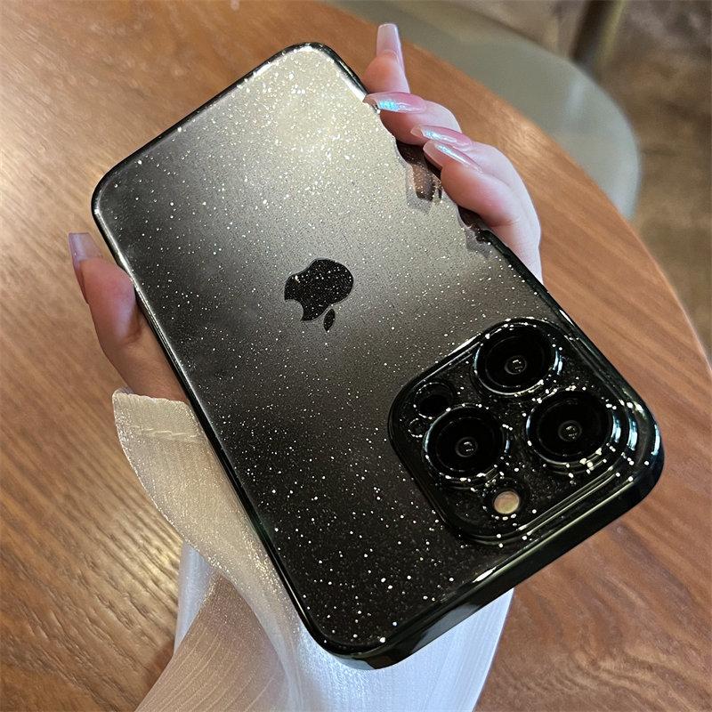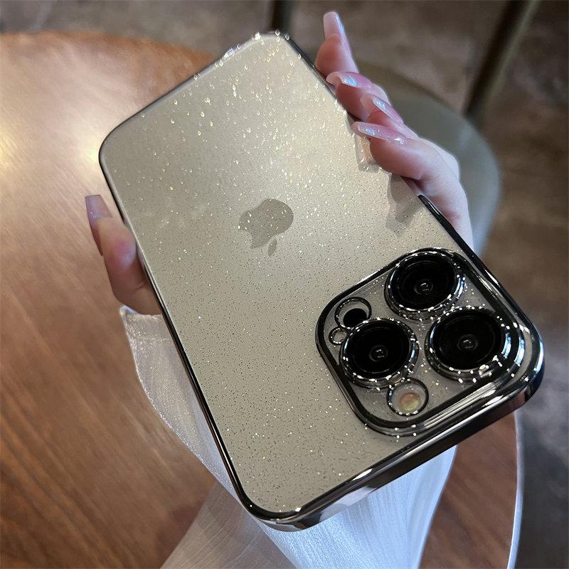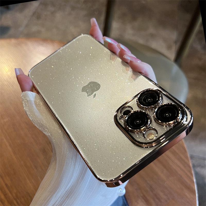 Роскошный блестящий чехол для телефона с гальваническим покрытием для iPhone 11 12 13 14 15 Pro Max Plus, прозрачный противоударный бампер, чехол