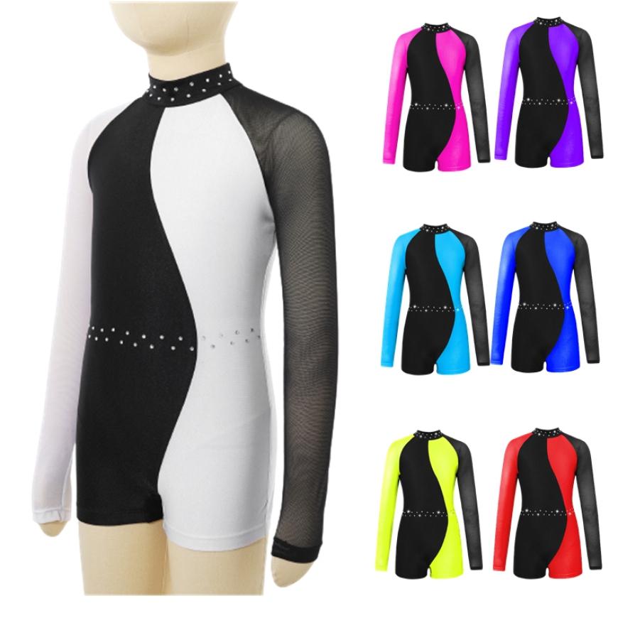 Балетный купальник для детей, сетчатый купальник с длинными рукавами контрастного цвета для танцев, комбинезон для гимнастики, одежда для танцев — купить товар онлайн с бесплатной доставкой по всему миру!