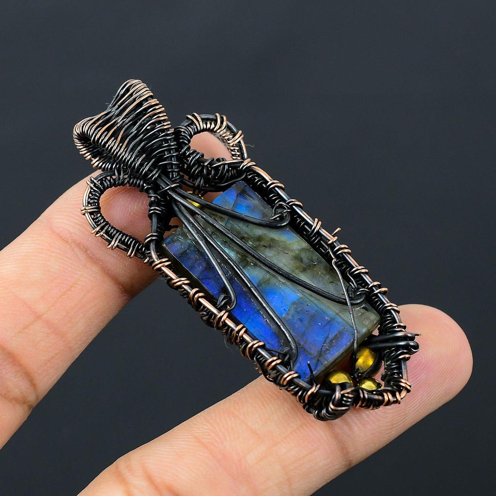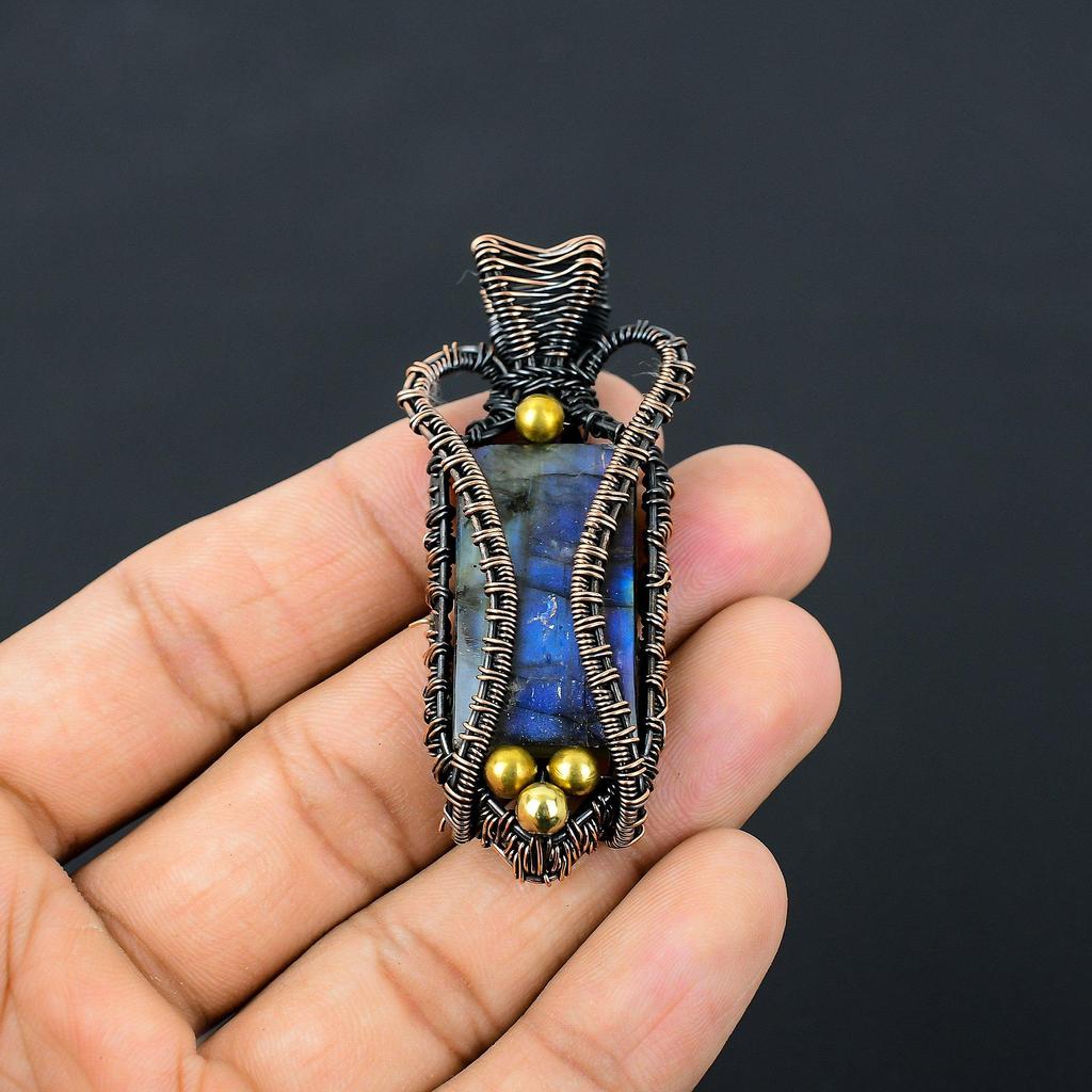 Лабрадорит Драгоценный камень Чистая медная проволока Обернутая ювелирная подвеска ручной работы