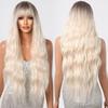 ALAN EATON Блондинка Длинные свободные волнистые синтетические парики с челкой для женщин Ombre Темные корни Натуральный парик Блондинка Повседневный парик из волос