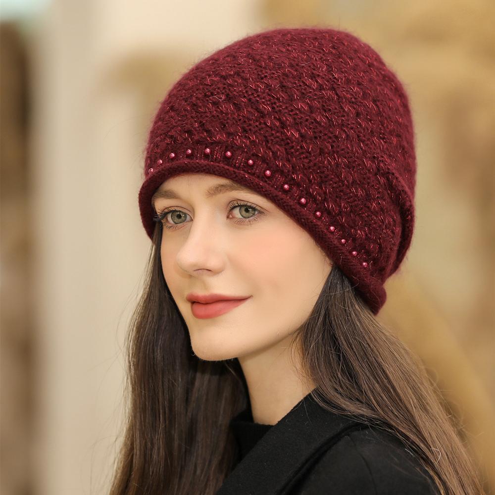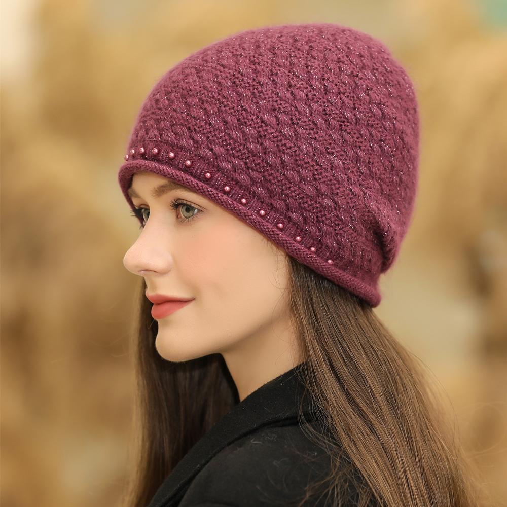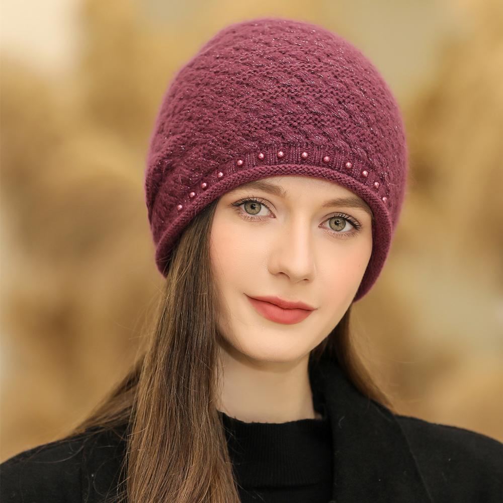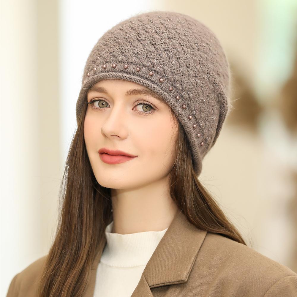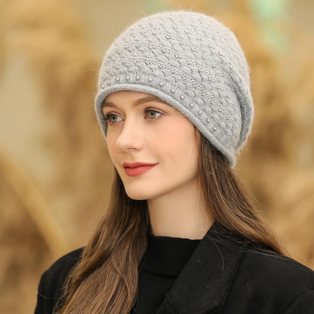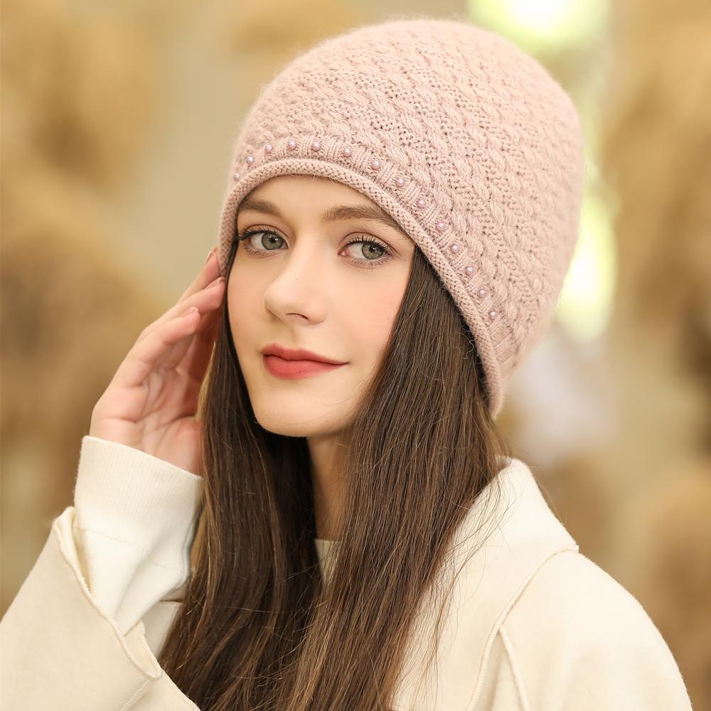 Новая женская зимняя шапка, уличная модная теплая шапка-бини для женщин, повседневная вязаная шапка с жемчужным украшением