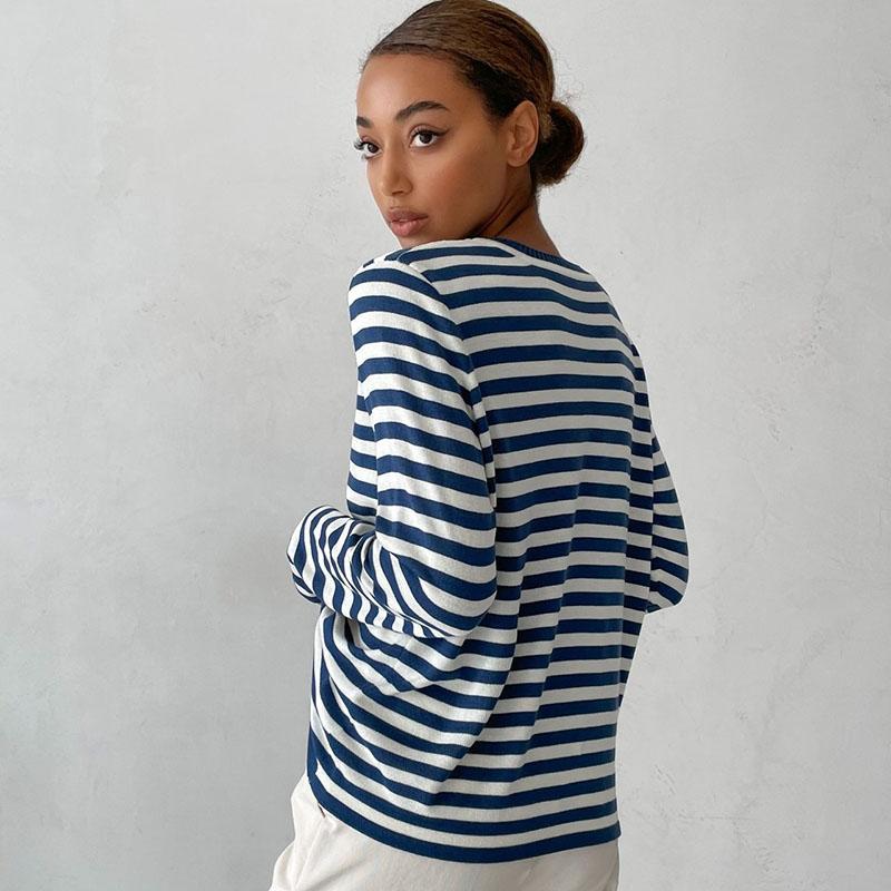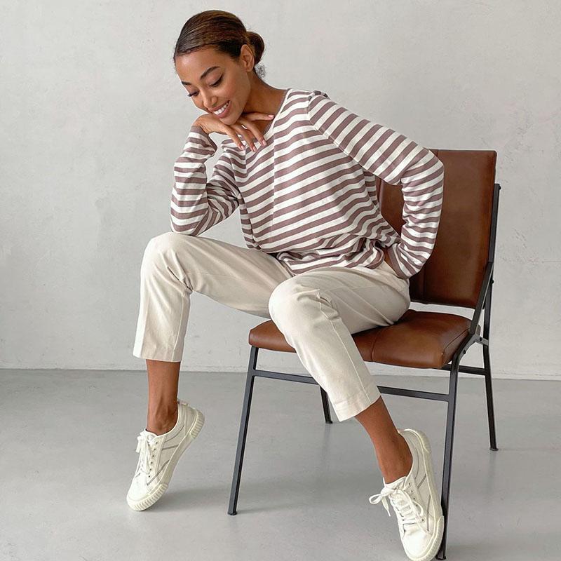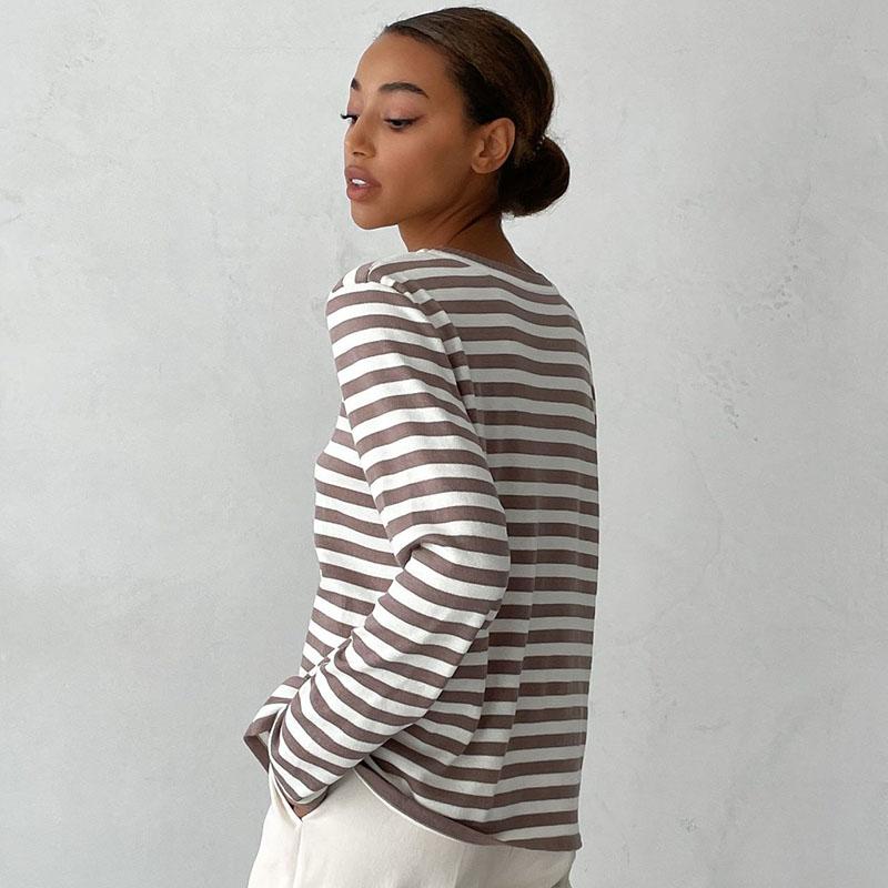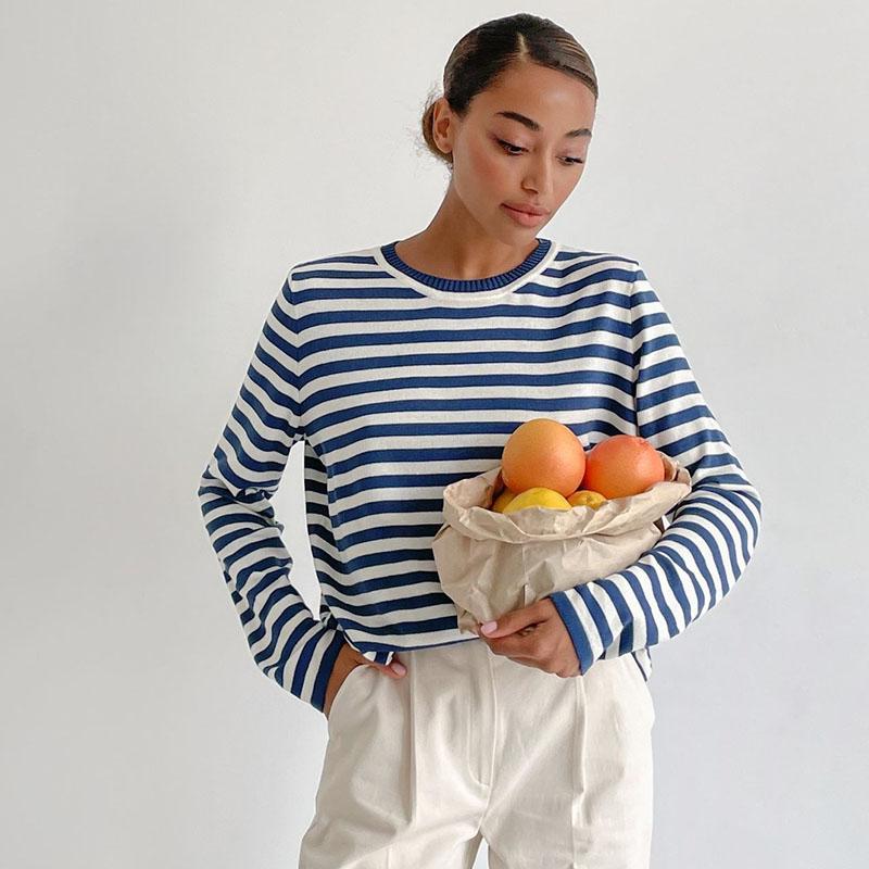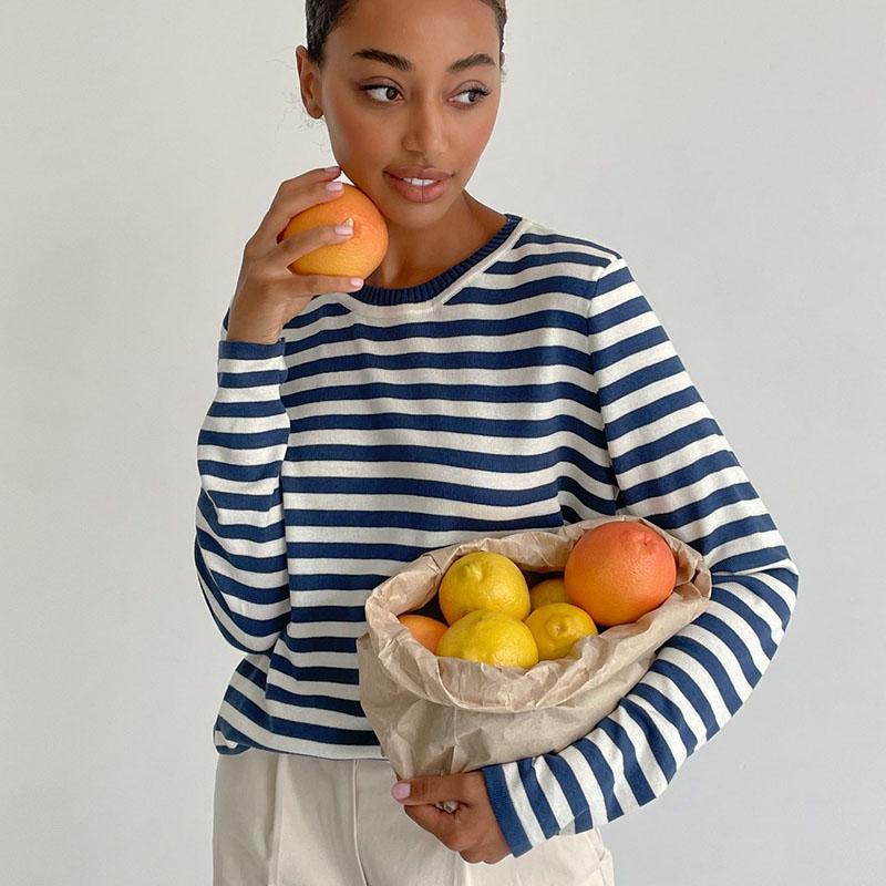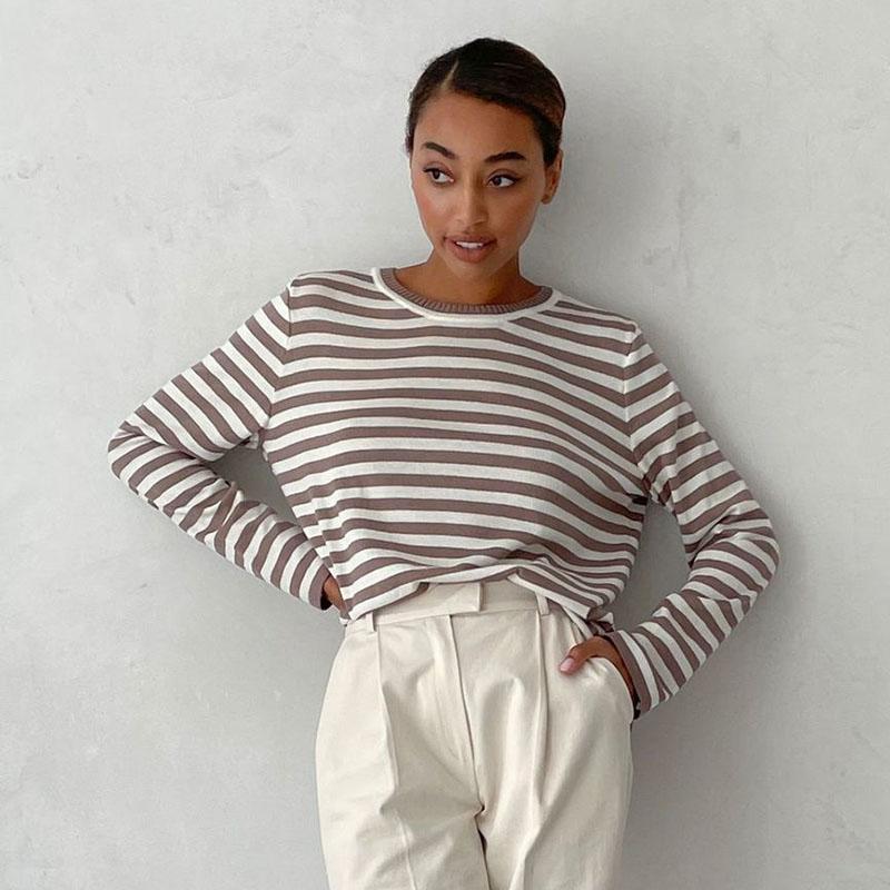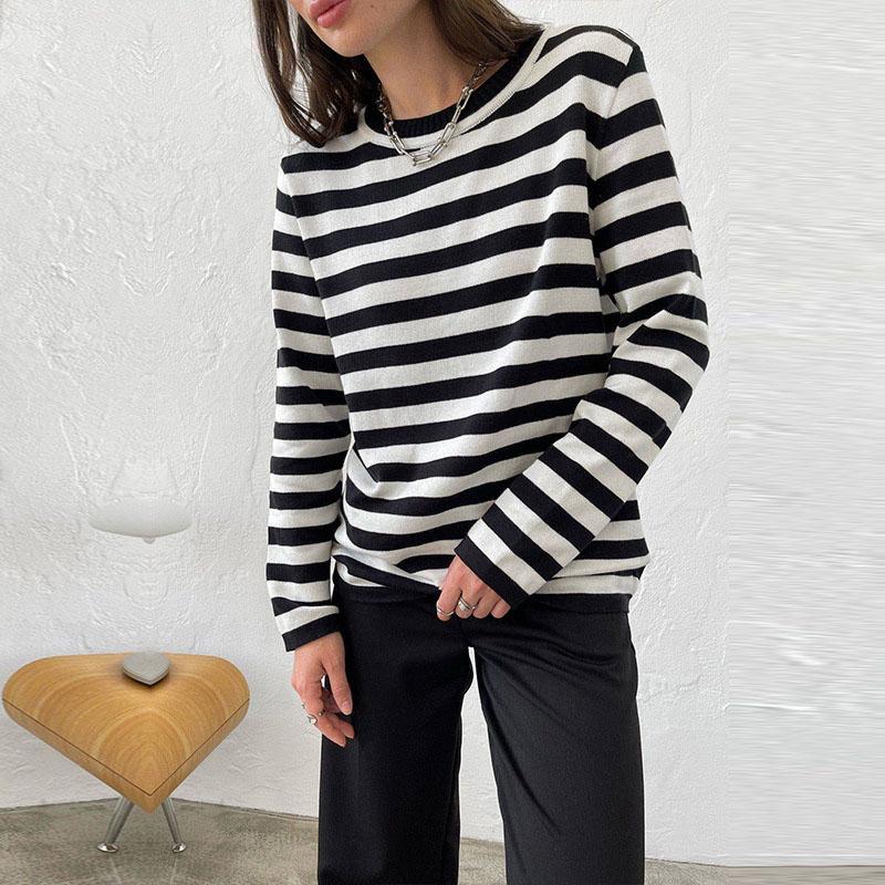 Женский осенне-зимний вязаный топ с круглым вырезом и длинным рукавом в полоску, свободный шикарный свитер