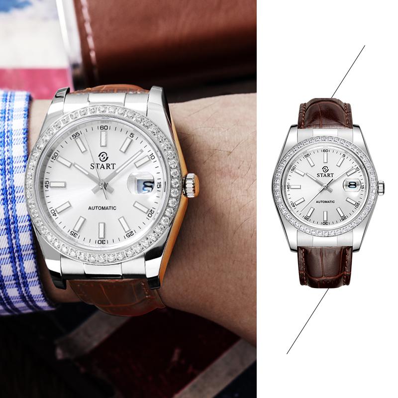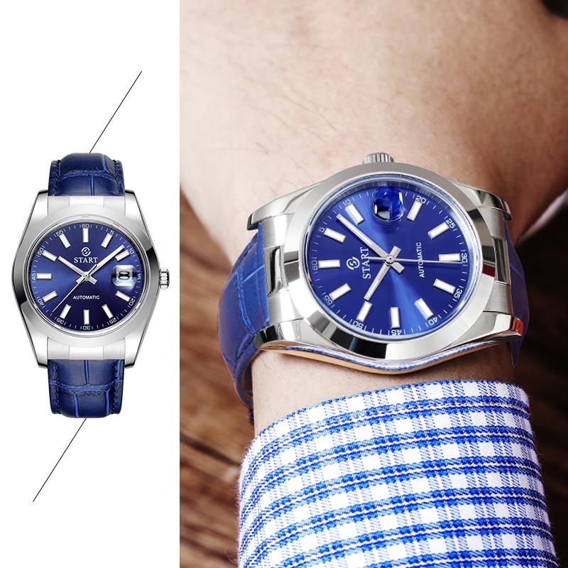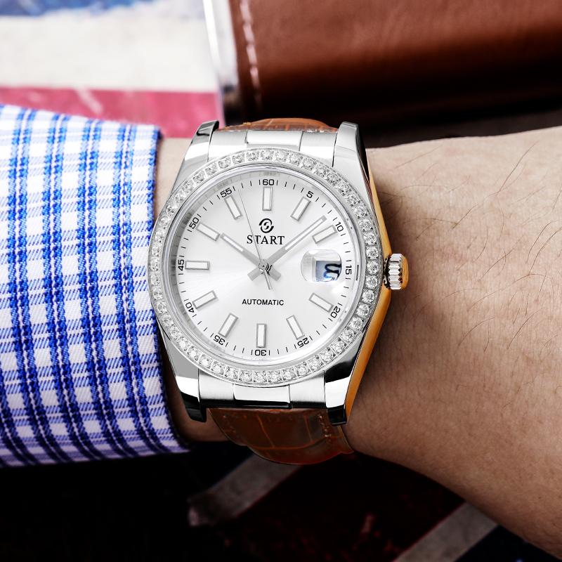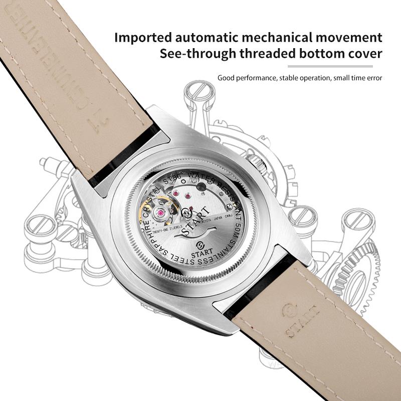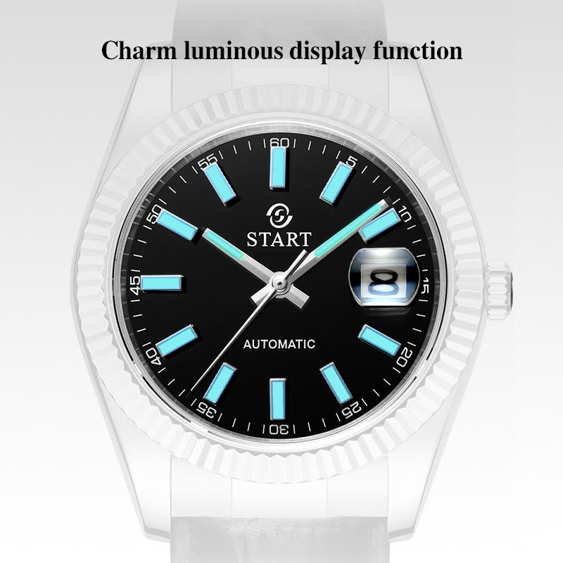Start Мужские часы со светящейся шкалой, автоматические механические часы, водонепроницаемые часы, функция календаря, ремешок с пряжкой-бабочкой