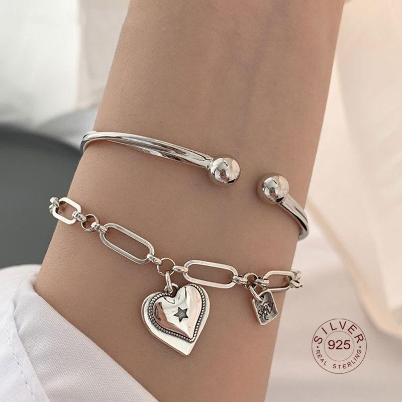 Минималистичные браслеты из стерлингового серебра 925 пробы с сердцем любви для женщин, модные винтажные ювелирные изделия ручной работы на день рождения