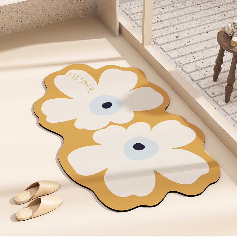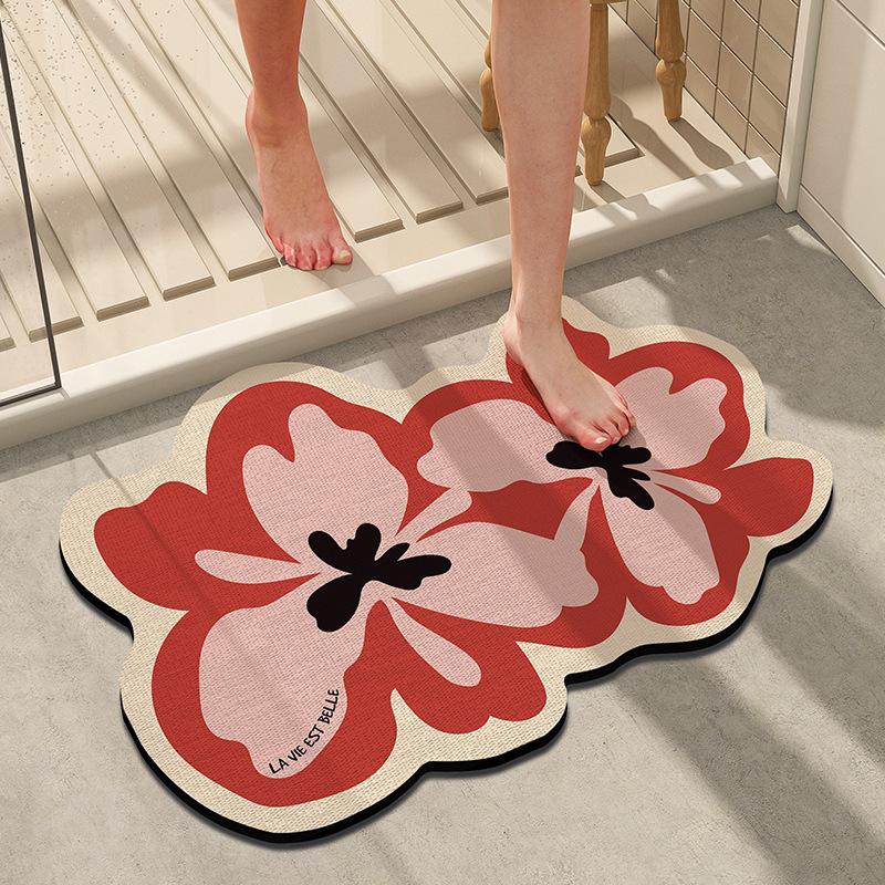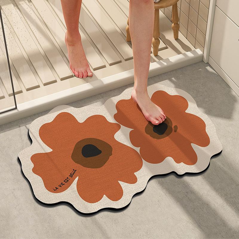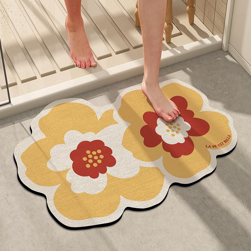 Коврик для пола из диатомовой грязи в ванной комнате, маленький свежий мягкий коврик в сельской местности, входной коврик в ванную комнату, противоскользящий коврик с цветочным абсорбентом