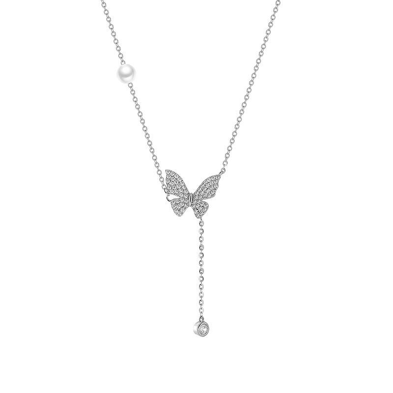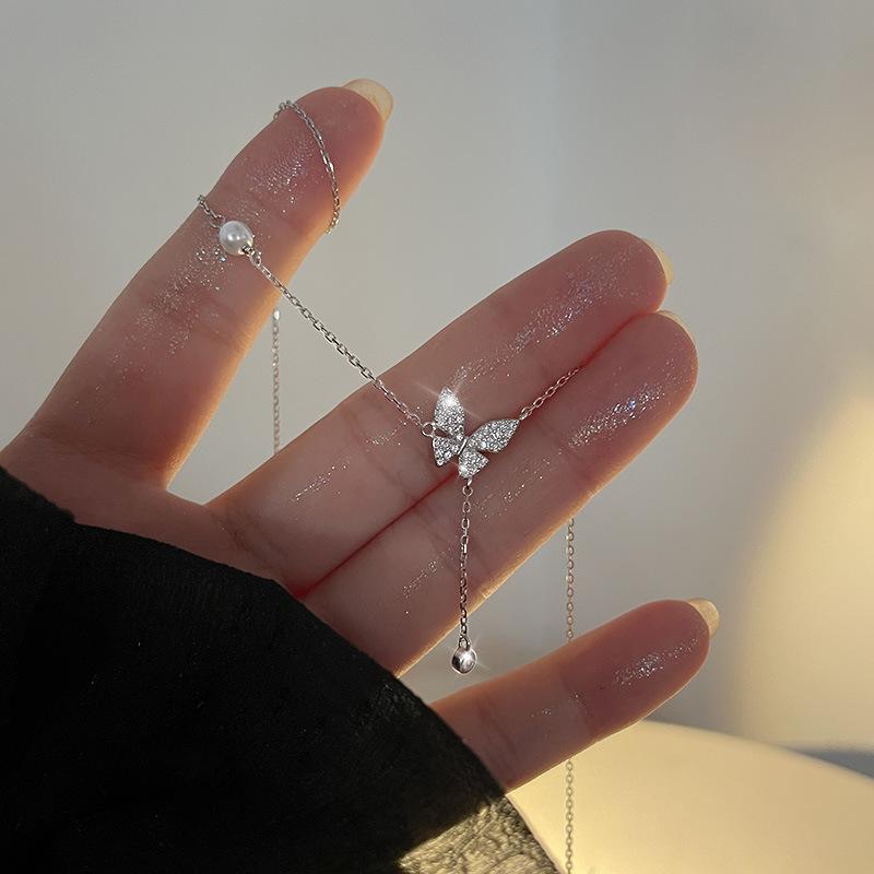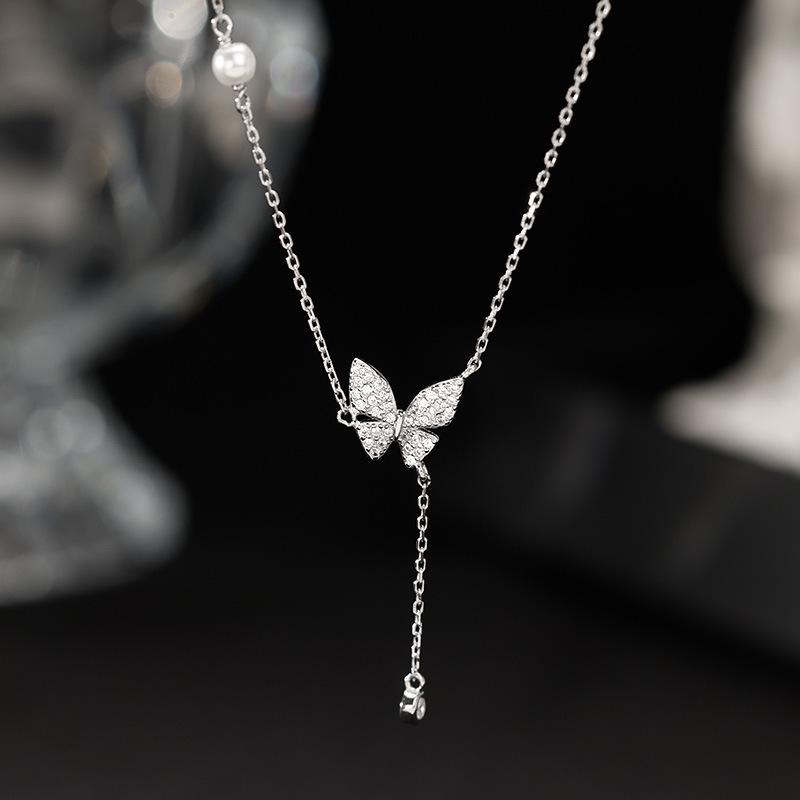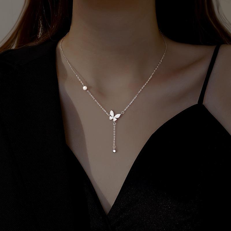Ожерелье с бабочкой и кисточкой из полной воды для женщин, новое модное темпераментное легкое роскошное ожерелье с нишевой цепочкой на ключицу, дизайнерское вечернее ожерелье