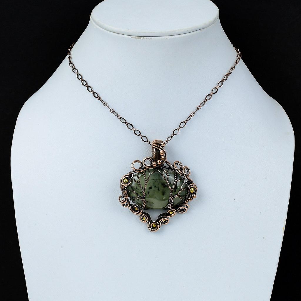 Древо жизни пренит драгоценный камень чистая медная проволока обернутая подвеска ручной работы ювелирные изделия для рождественского подарка
