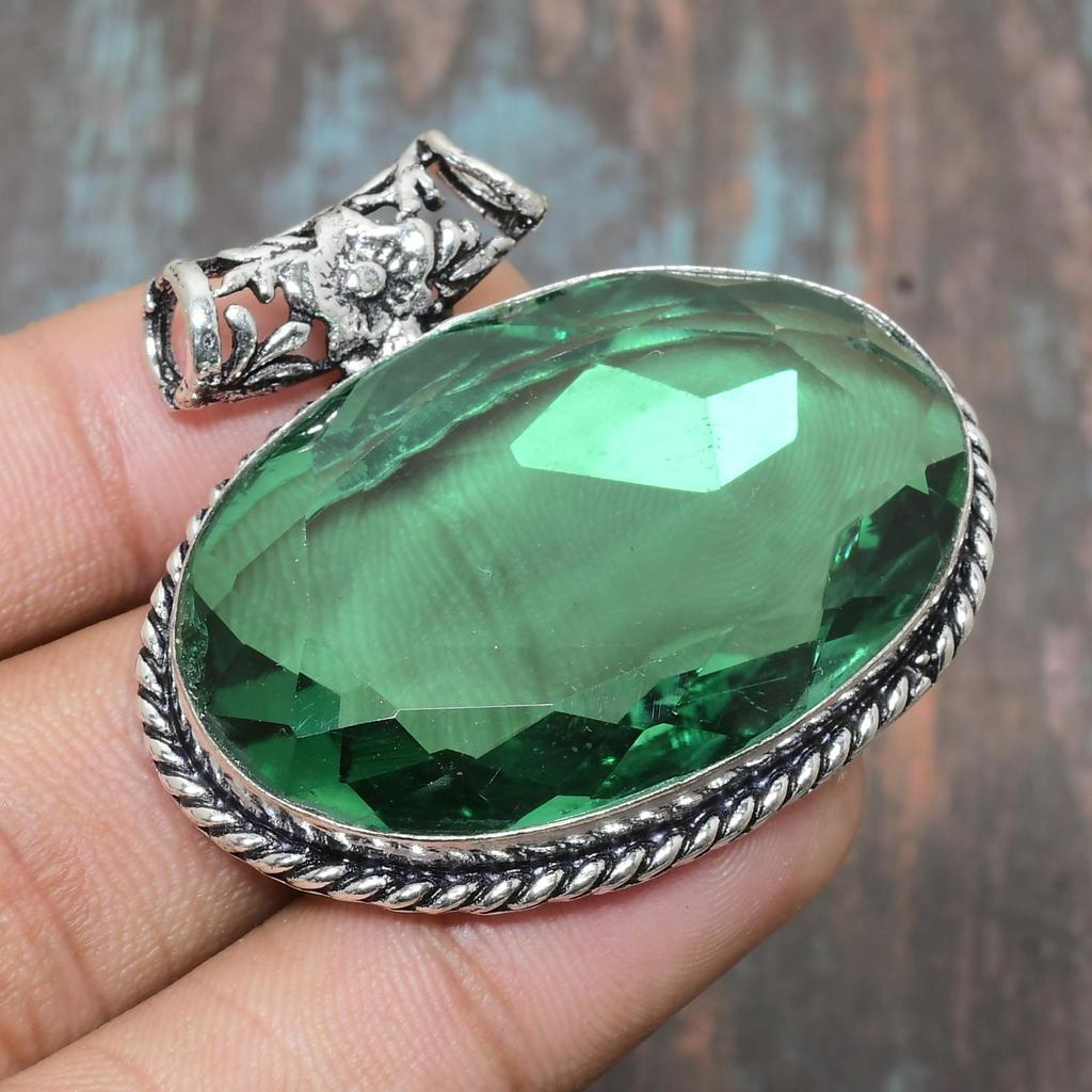 Хром-диопсид драгоценный камень твердый стерлингового серебра 925 пробы замечательный ювелирный кулон ручной работы