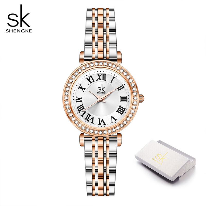 Shengke лучший бренд класса люкс женские часы из нержавеющей стали водонепроницаемые часы женские часы часы с бриллиантами