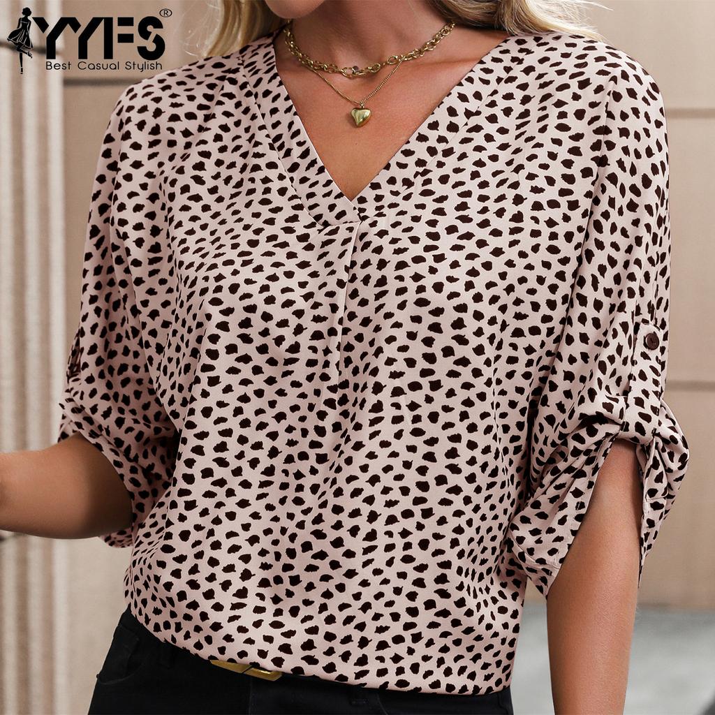 YYFS Женские модные повседневные блузки и рубашки с v-образным вырезом и длинными рукавами с леопардовым принтом