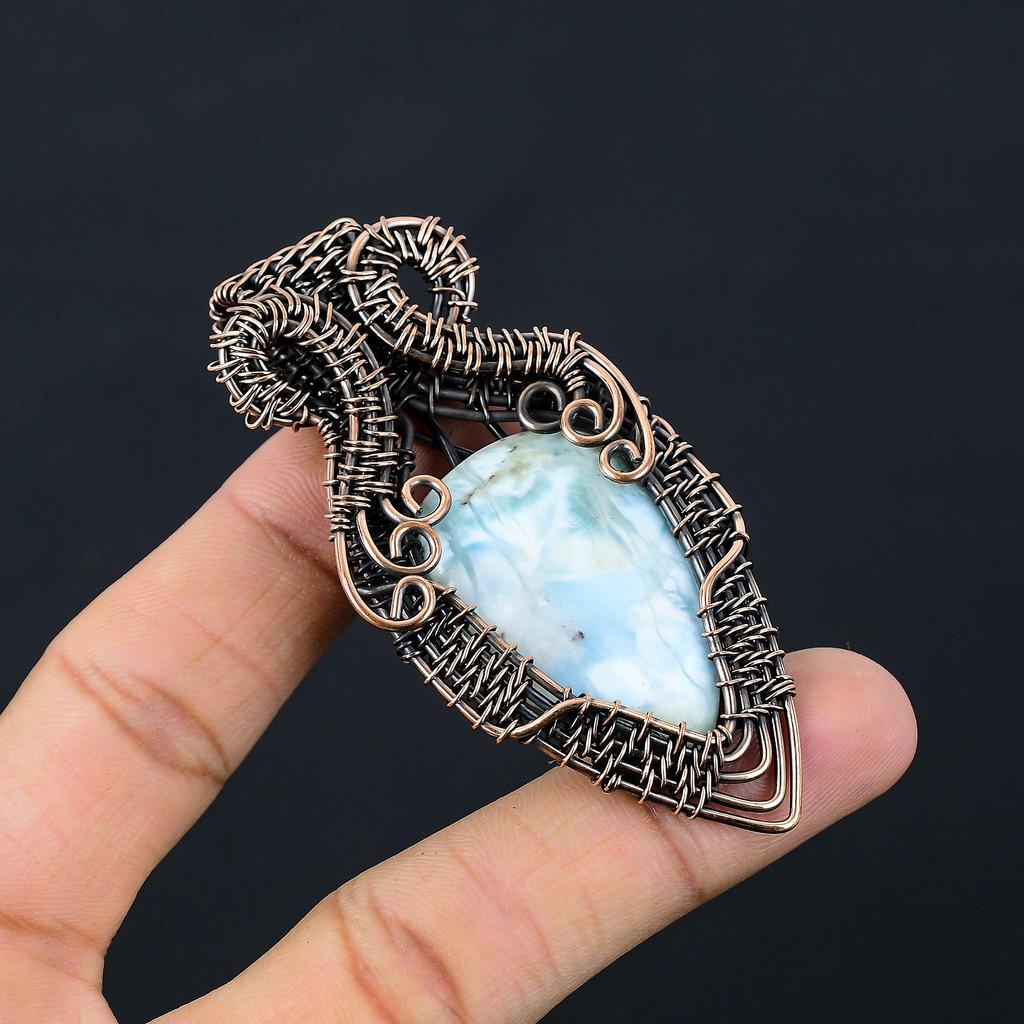 Красивый кулон Ларимар с драгоценным камнем из чистой медной проволоки, обернутый ювелирными изделиями ручной работы для нее