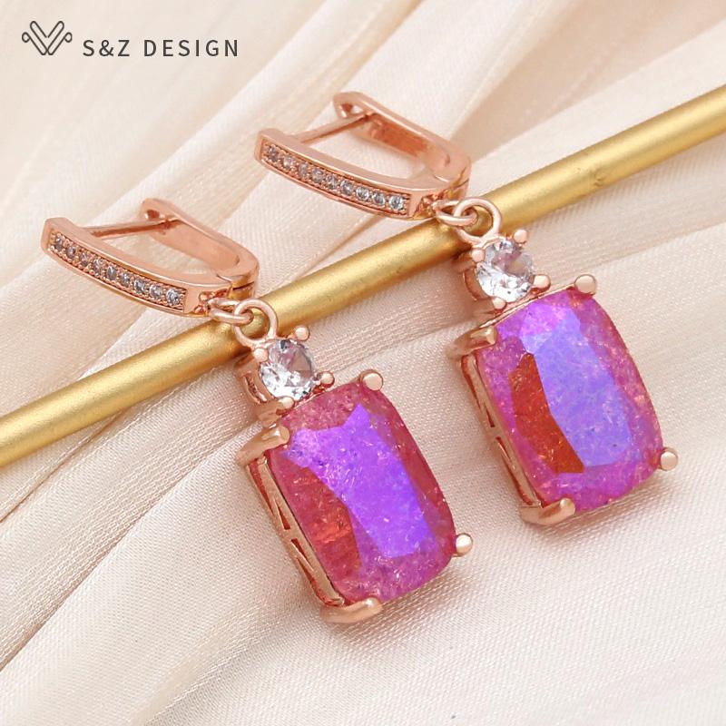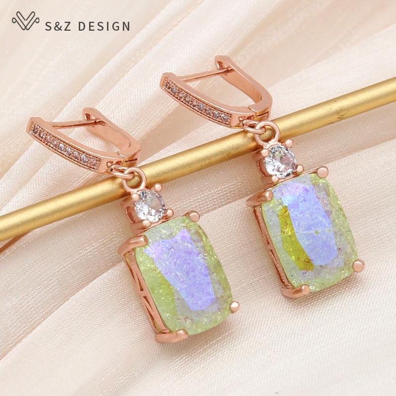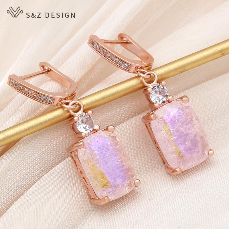 Модные серьги-капельки цвета розового золота с прямоугольными кристаллами и трещинами льда для женщин, свадебные украшения с кубическим цирконием