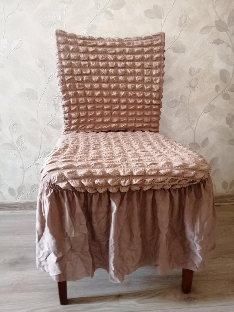 Дорогие продавцы! Хочу Вас поблагодарить от души! Уж угодили,то угодили! Сразу примерила,юбку не утюжила, Шик!Надо поутюжить и всё будет супер! Материал отличный,хотя у меня спинки высокие,для сравнения другой стул без чехла.Покупайте и не сомневайтесь!