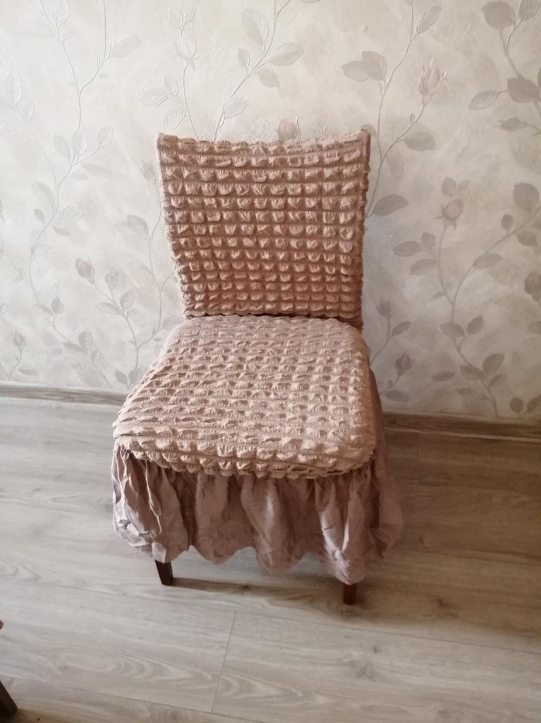 Купила давно такие чехлы на кресла. Теперь получила 3 чехла еа стулья. Была хорошая скидка и хорошие баллы. Получилось не дорого. Извините, что пока него глажены. Очень довольна. Рекомендую. Спасибо продавцу и Джум.