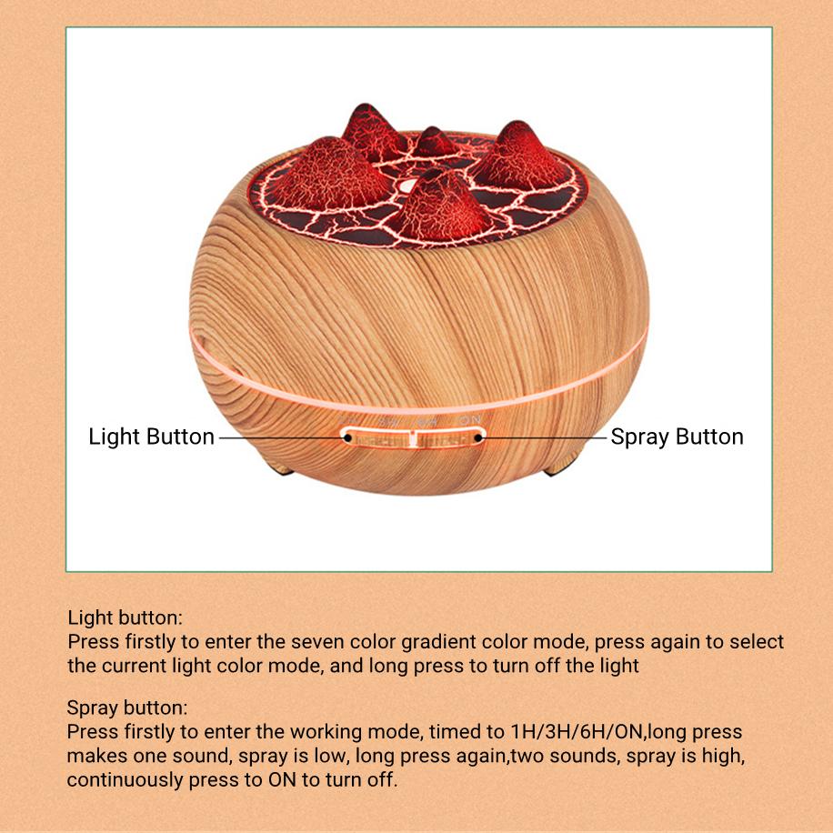 Диффузор эфирного масла для ароматерапии, 400 мл, со светодиодной подсветкой, ультразвуковой генератор тумана, вулкан, увлажнитель воздуха, диффузор