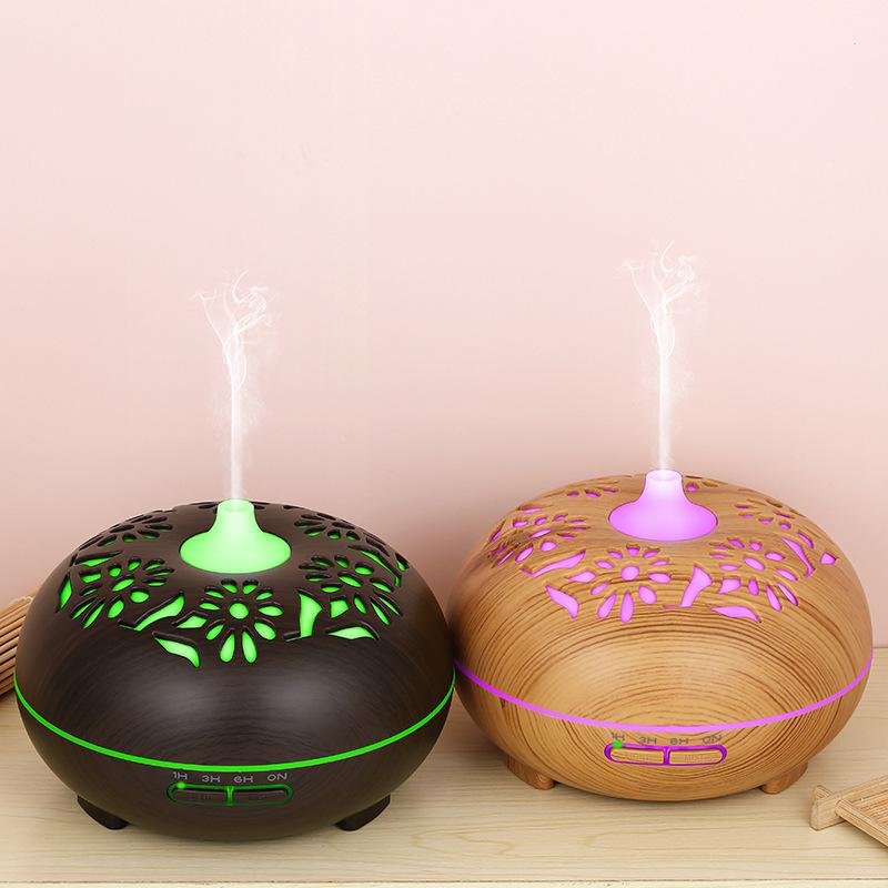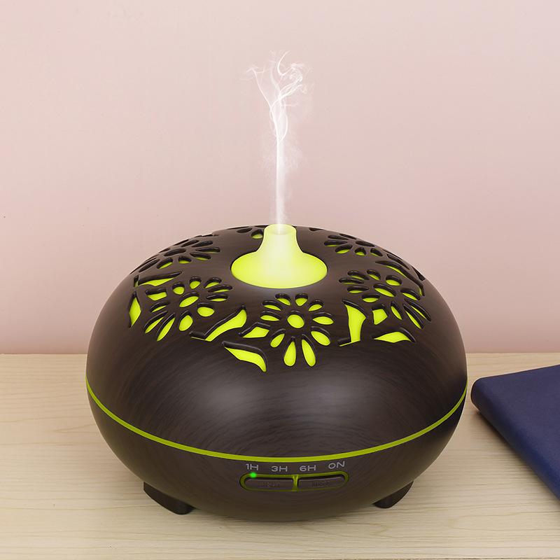 Диффузор эфирного масла Ультразвуковой увлажнитель воздуха Цветная светодиодная лампа 500 мл Резной электрический диффузор для ароматерапии для дома