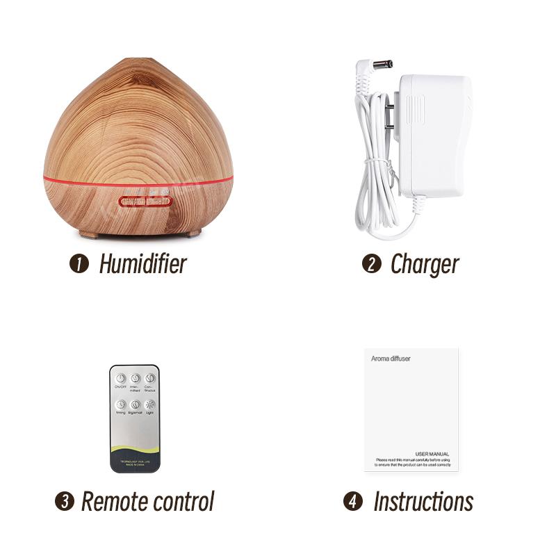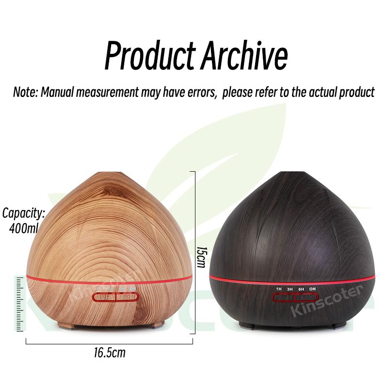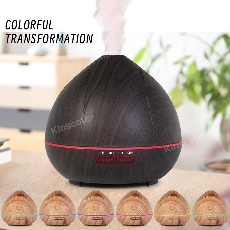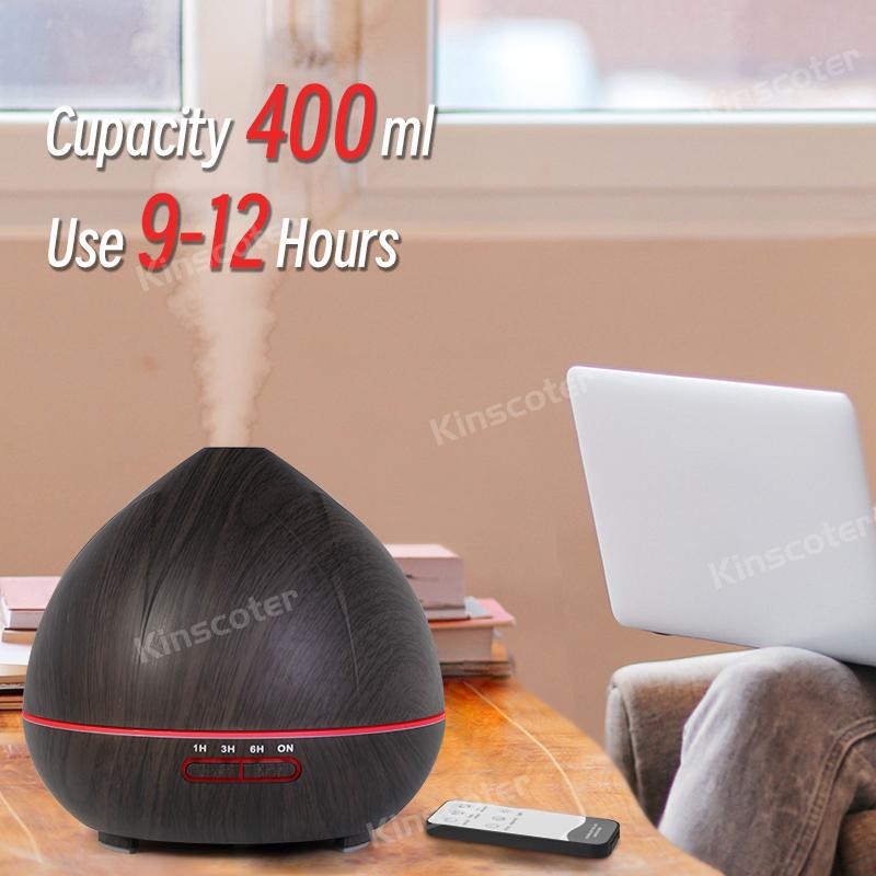Ароматический диффузор эфирного масла 400 мл, ультразвуковой ультразвуковой увлажнитель с древесным зерном, бесшумный увлажнитель с дистанционным управлением