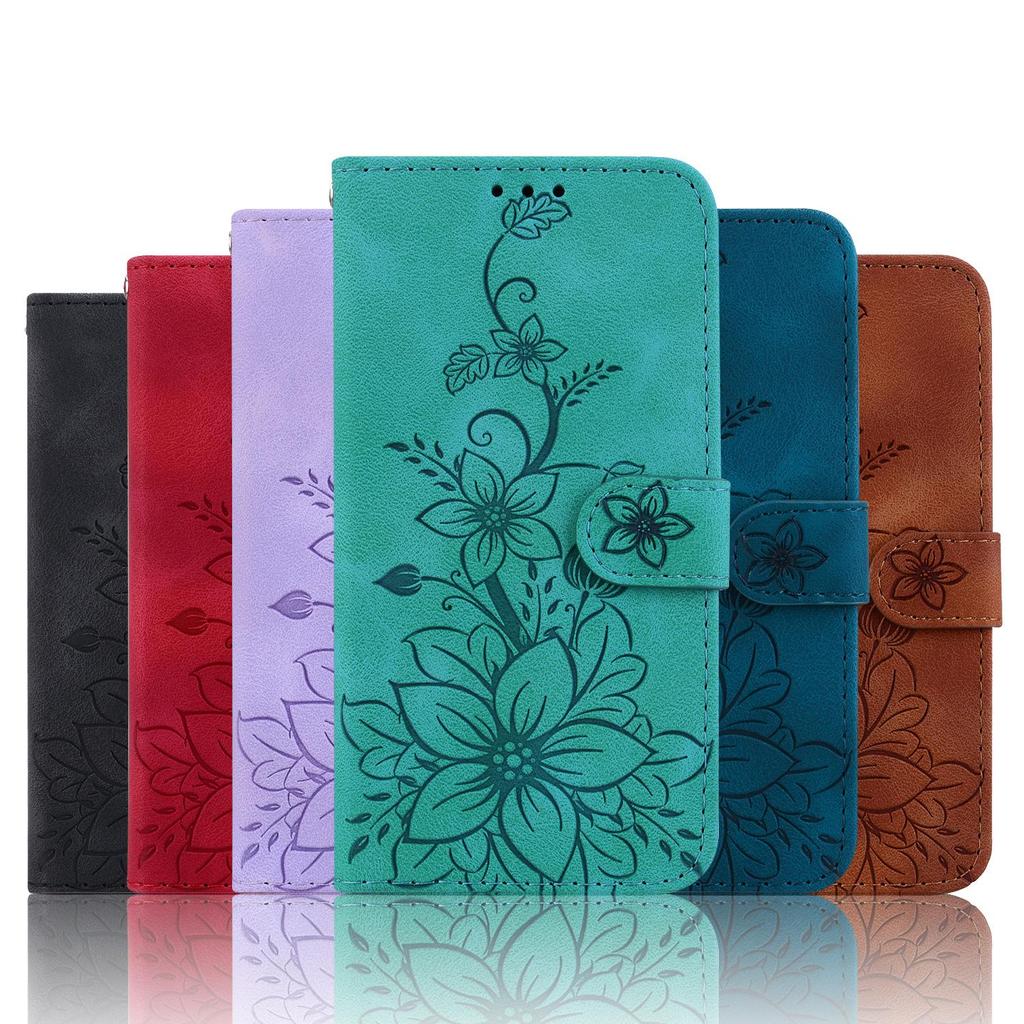 Кожаный чехол-кошелек для телефона с 3D-тиснением и цветочным узором, подставка для книг для Huawei Moto Oppo Realme OnePlus 11, симпатичная цветная сумка с откидной крышкой для магнитной карты