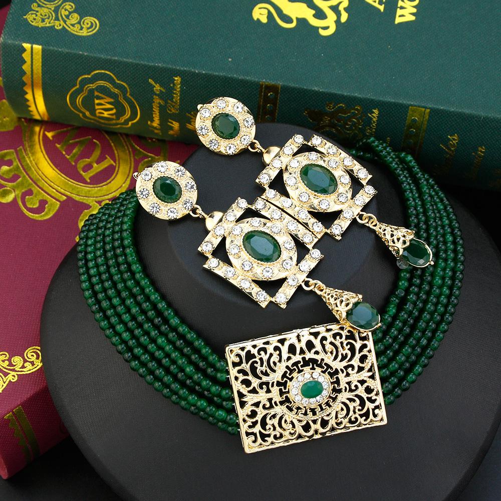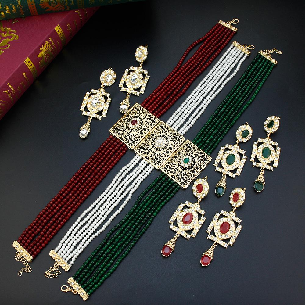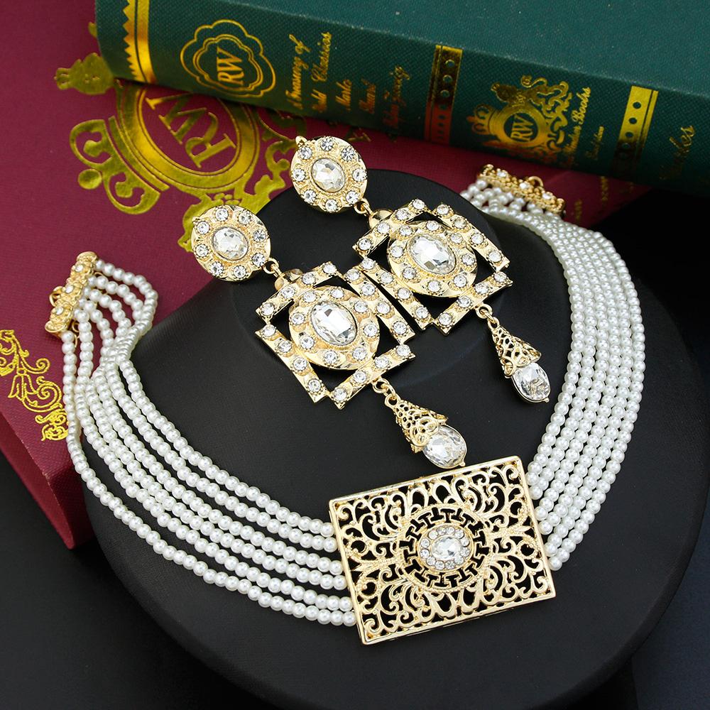 Шикарные комплекты ювелирных украшений для невесты золотого цвета для женщин, ожерелье-колье с бусинами, серьги-капли, арабские свадебные украшения
