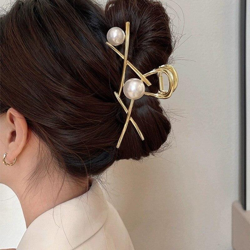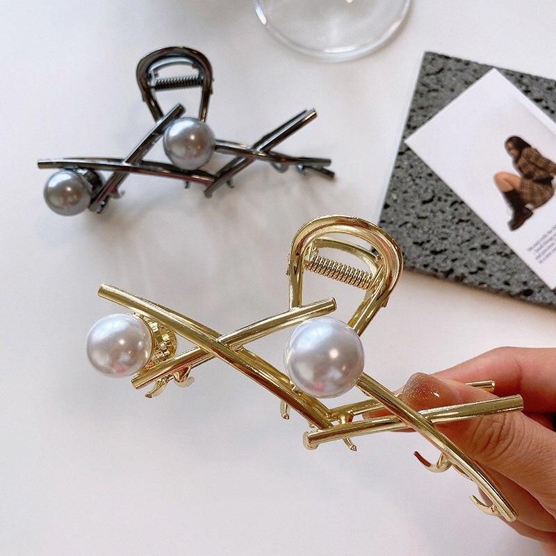 2023 Новая мода жемчужные когти для волос Изысканные металлические заколки для волос с крестом Заколки для волос Головные уборы Модные женские аксессуары для волос Премиум-подарки