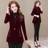 Золотой бархатный пиджак, женская весенняя одежда, новый весенне-осенний женский профессиональный костюм, пиджак для мамы, бордовый цвет