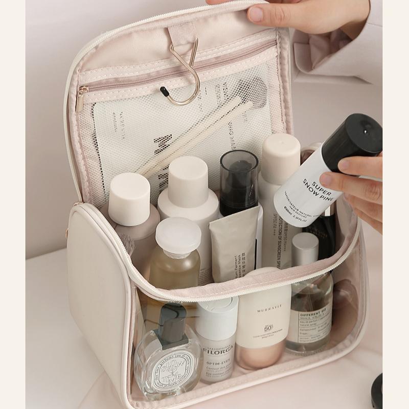 Прозрачная косметичка для женщин, подвесной дорожный туалетно-косметический органайзер большой емкости, водонепроницаемый органайзер на молнии