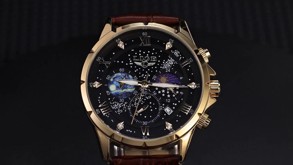 LIGE Новые модные мужские часы Роскошные деловые кожаные мужские часы со звездным небом Кварцевые часы с ночным светом Водонепроницаемые наручные часы Автоматические часы с кодом даты и времени — купить товар онлайн с бесплатной доставкой по всему миру!