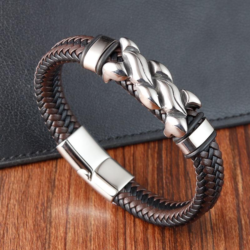 Мужской кожаный браслет из веревки ручной работы, 21 см, черный винтажный браслет-цепочка в стиле хип-хоп, мужские украшения из нержавеющей стали — купить товар онлайн с бесплатной доставкой по всему миру!