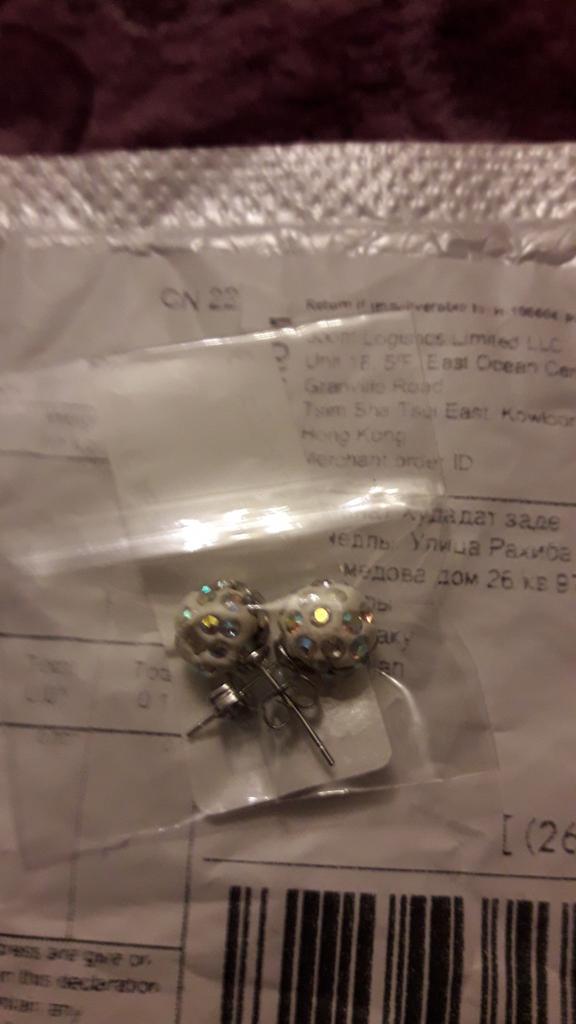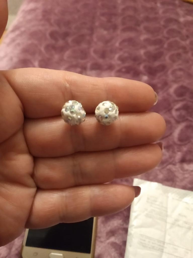 Были такие серьги от другого продавца. Наивно полагают, что стразов будет больше. Да, и сделаны не очень аккуратно. С другой стороны, они такие дешёвые, что и на том спасибо! ;) Но блестят отлично!