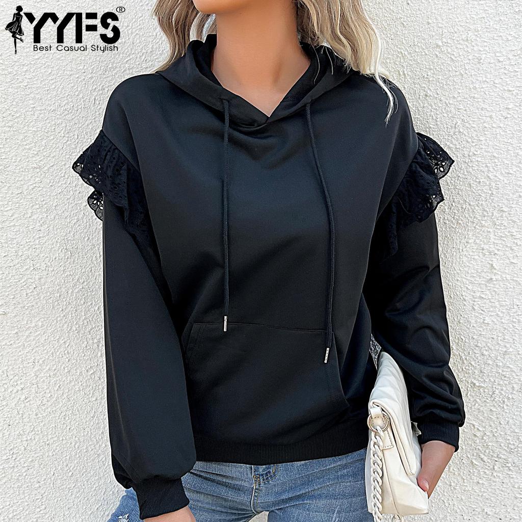YYFS Женские модные повседневные однотонные худи и свитшоты с капюшоном и длинными рукавами с принтом