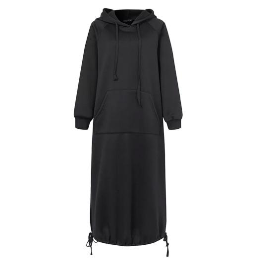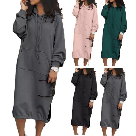 Популярное однотонное платье с капюшоном с простым и стильным внешним видом.