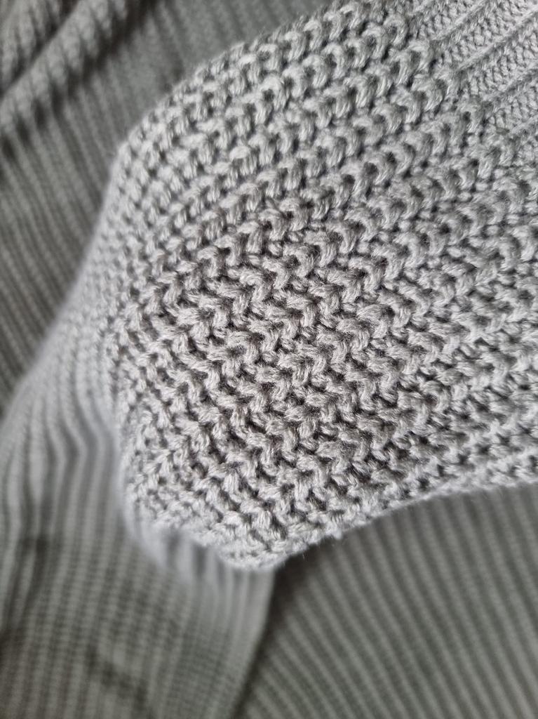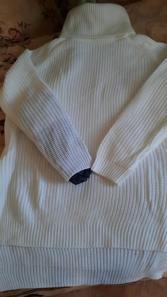 Получила свитер, просто супер. Смотрится на 100. На фото кажется толще, но даже это не проблема. Проблема в том, что на рукаве конкретный брак. 1/3 рукава от манжета намного тоньше, как будто одна нить порвалась и вязка дальше идёт в тонкую нитку. Очень, очень расстроилась. На фоне чёрного пакета в рукаве это хорошо видно.