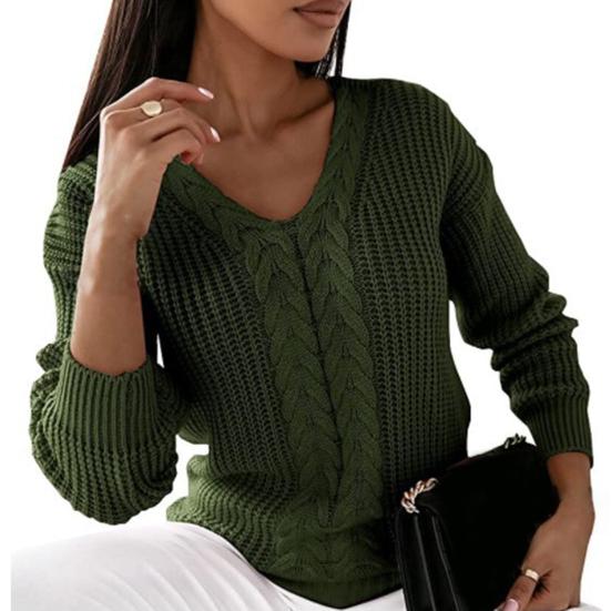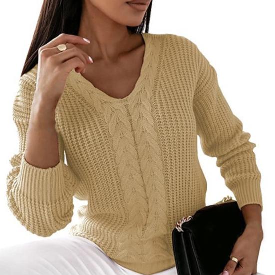 Женский пуловер-свитер имеет однотонный и тонкий дизайн, который может сочетаться с тонкими джинсами или брюками, и заставляет вас выглядеть просто и стильно в повседневной жизни.