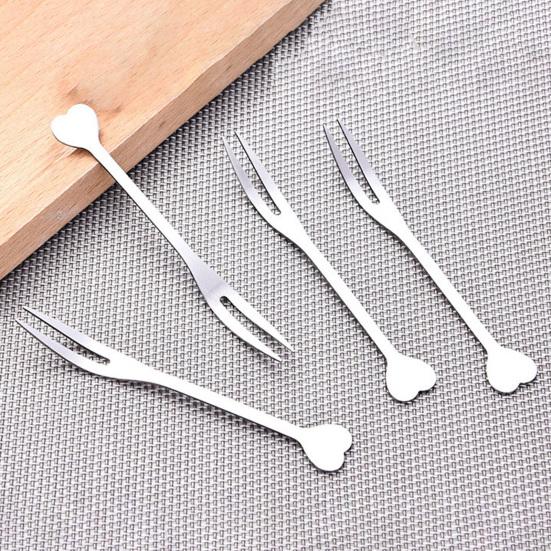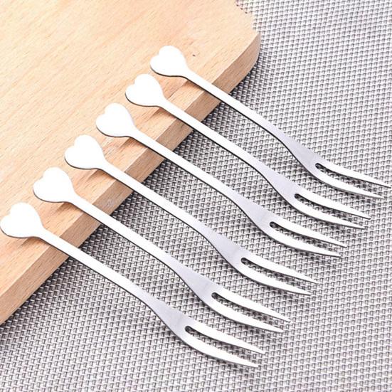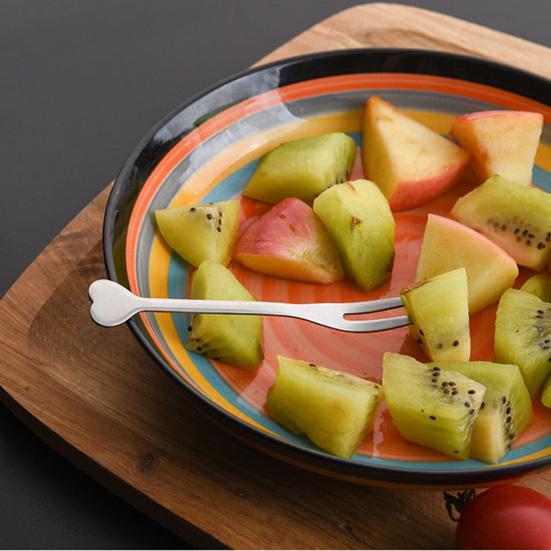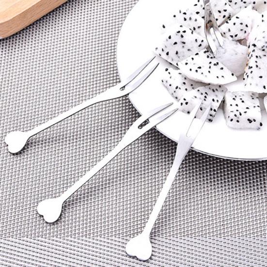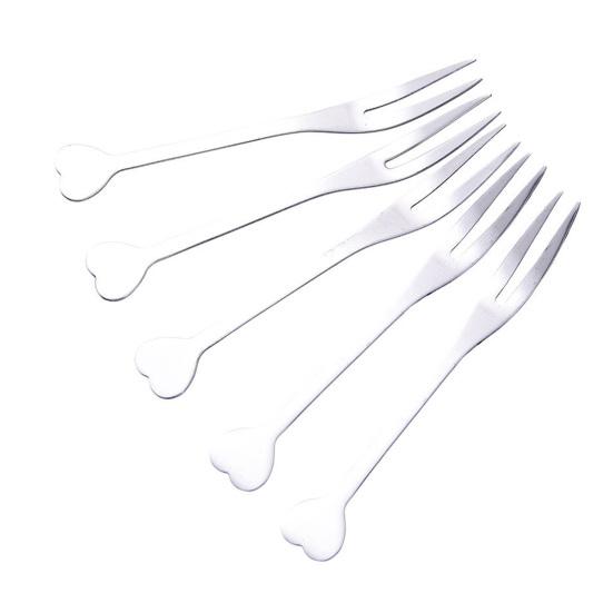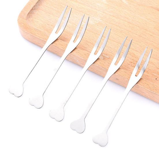 5 шт. фруктовая вилка в форме сердца с двумя зубцами из нержавеющей стали, устойчивая к ржавчине, выбор десерта, кухонные аксессуары