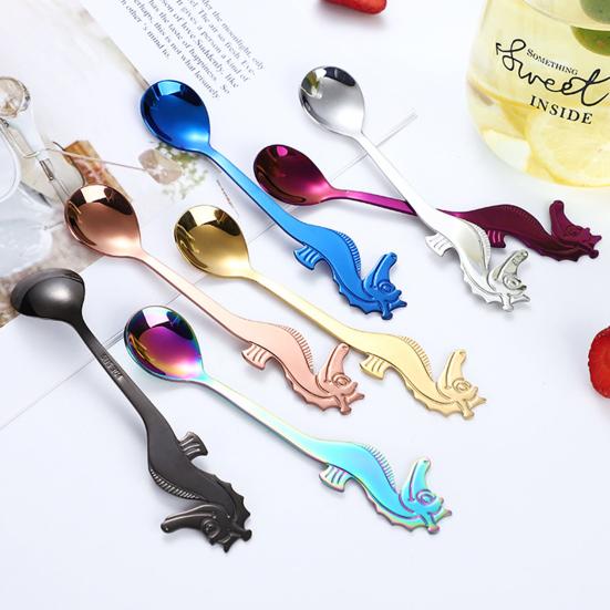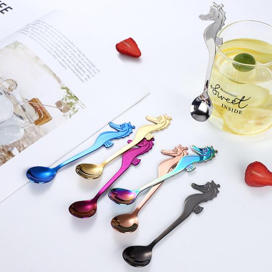 Кофейная ложка в форме морского конька, полированная нержавеющая сталь 304, десертная ложка для вечеринок, мероприятий