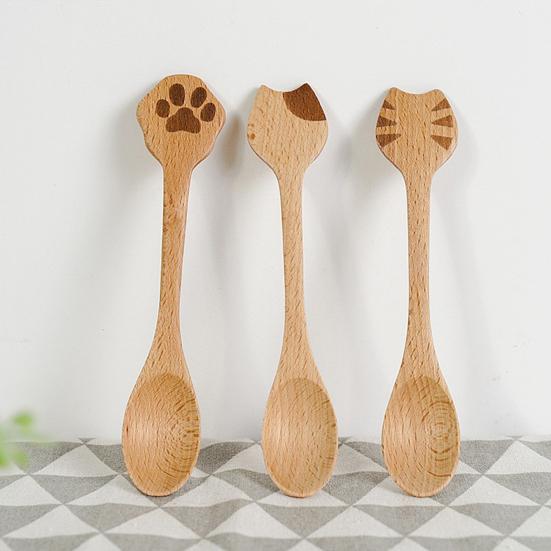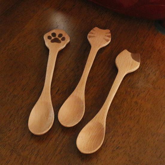 Креативная деревянная ложка для животных, детей, кошек, свиней, ужина, супа, ложка для кормления, кухонный инструмент
