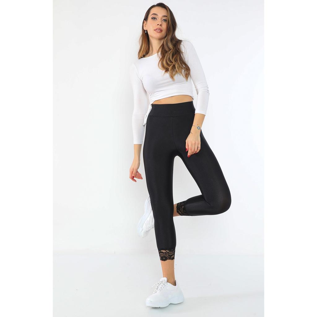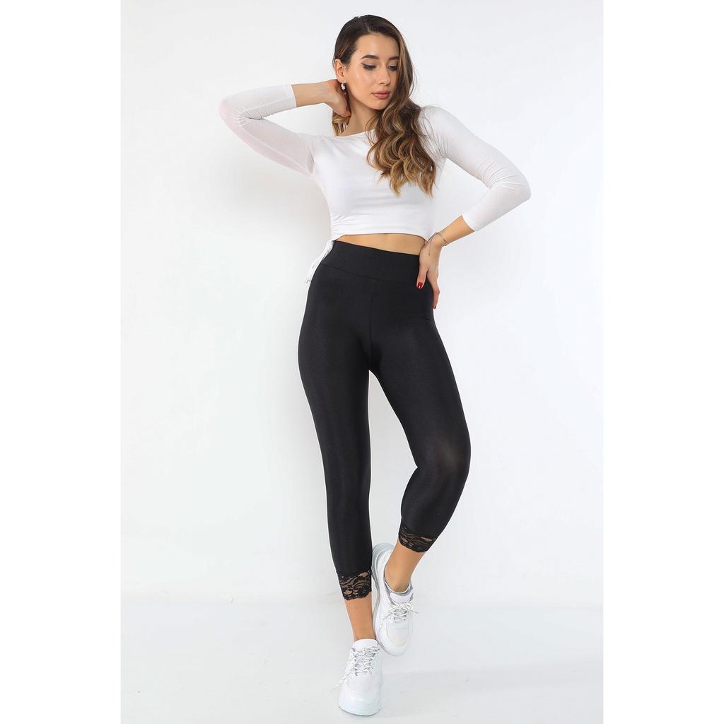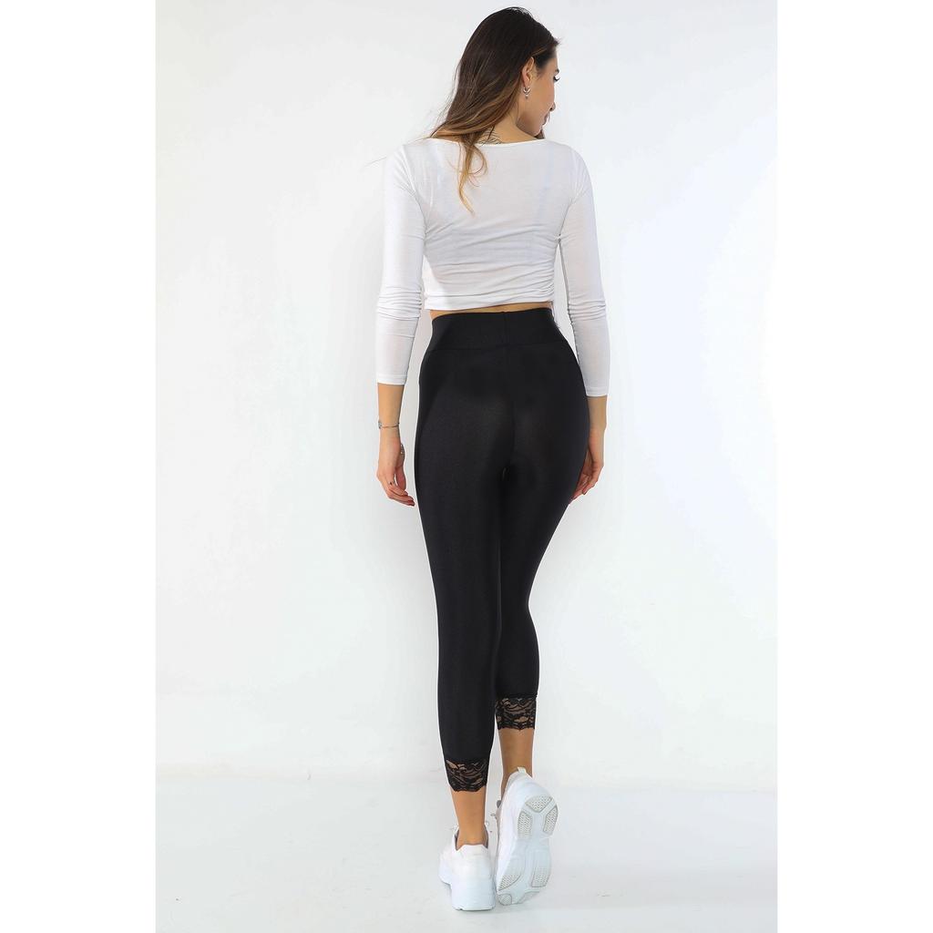 Черные женские леггинсы с кружевной вышивкой и очень высокой талией