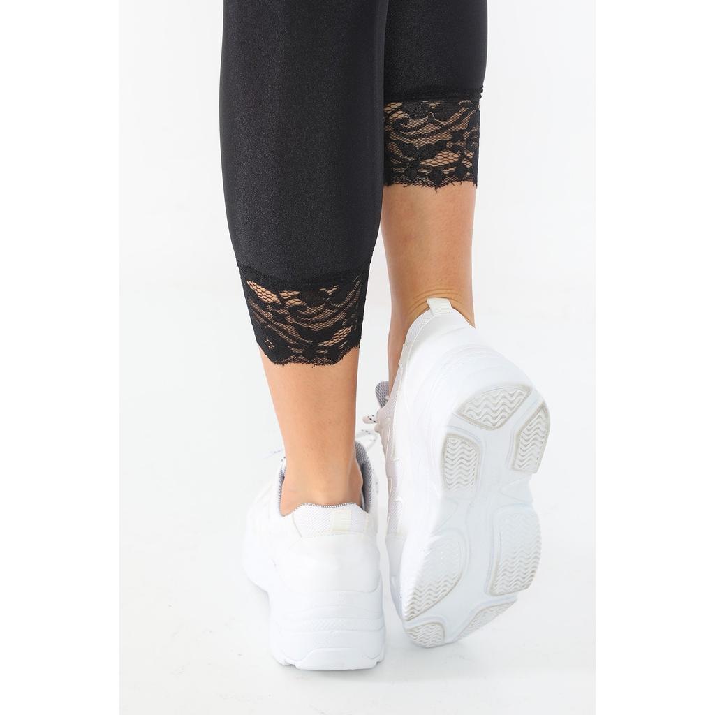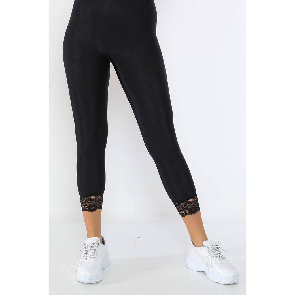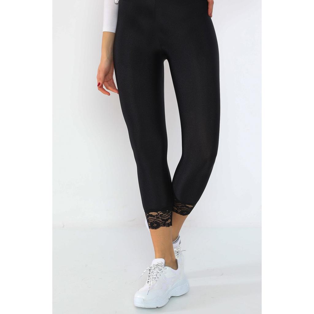 Черные женские леггинсы с кружевной вышивкой и очень высокой талией