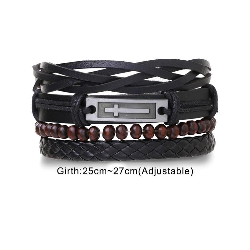 Черный, 4 шт./компл., винтажные регулируемые браслеты-цепочки с крестиками, плетеные браслеты в стиле панк для мужчин, модные украшения