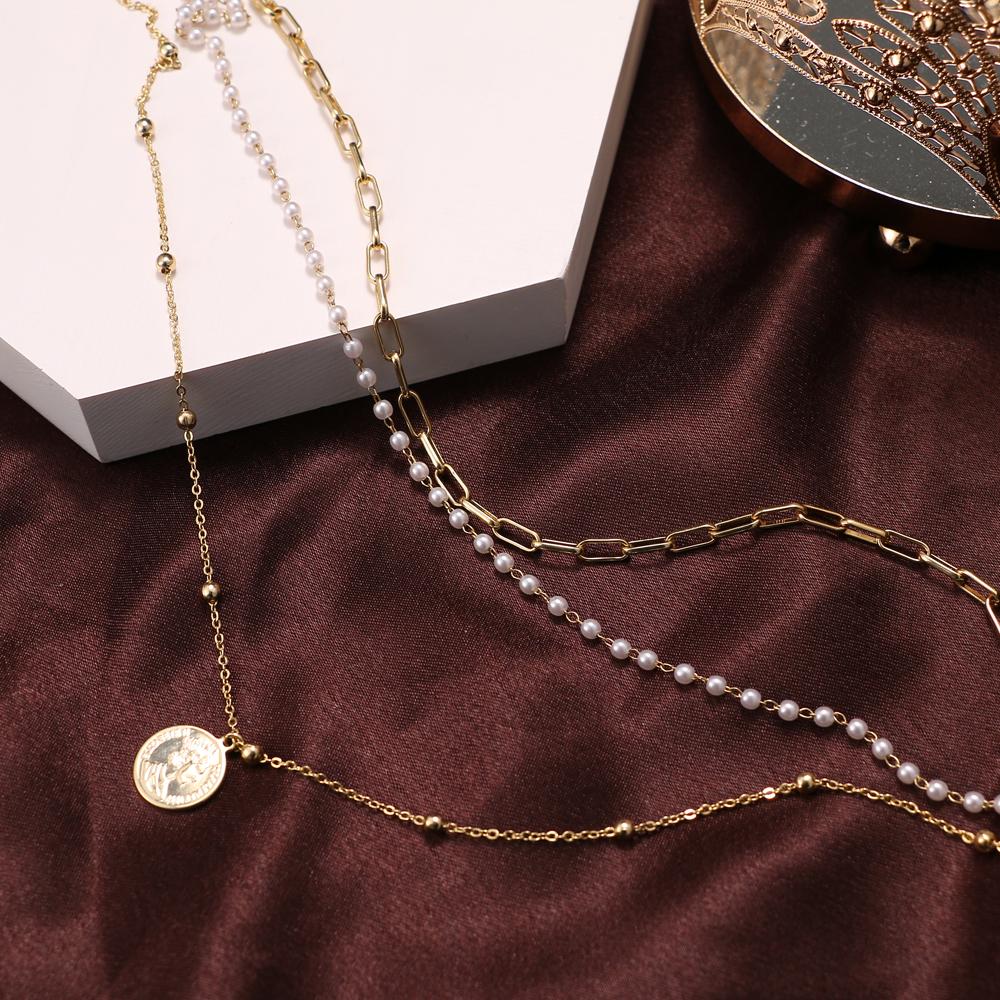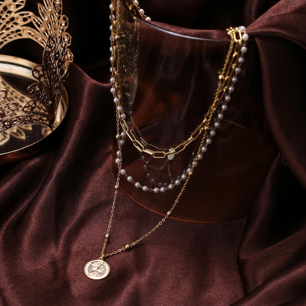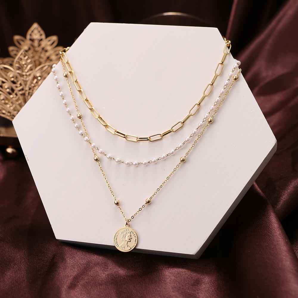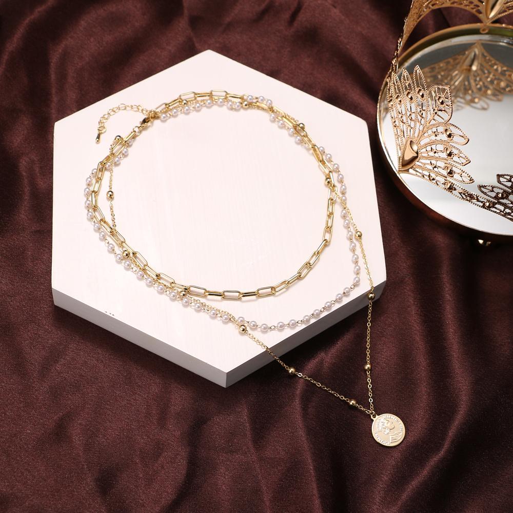 Винтажное многослойное ожерелье, кулон в виде монеты, цепочка на ключицу из бисера, женские элегантные темпераментные ювелирные аксессуары