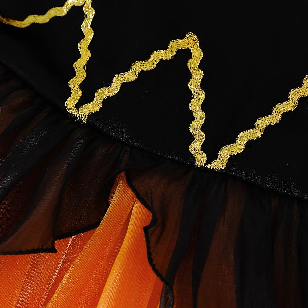 Оранжевое платье на Хэллоуин, платье для косплея на день рождения, кружевное платье-пачка принцессы с цветочной вышивкой, детская одежда для девочек, детская праздничная одежда для девочек