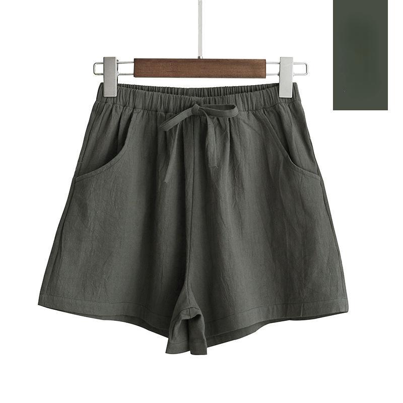 Женские летние хлопковые льняные брюки, однотонные широкие шорты с эластичной резинкой на талии