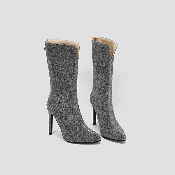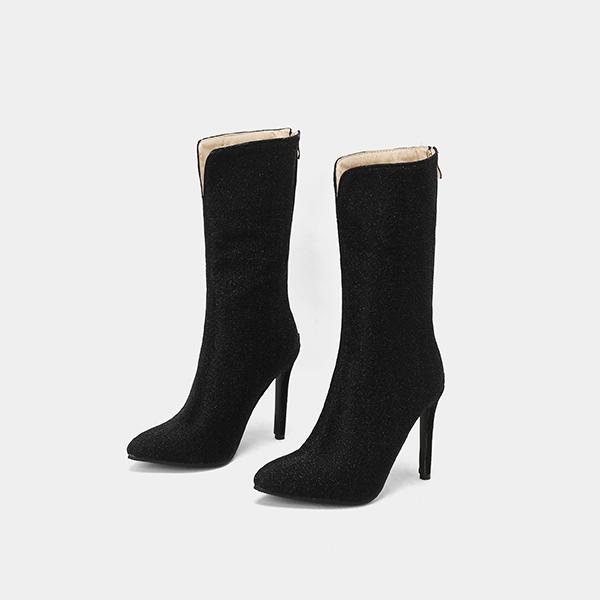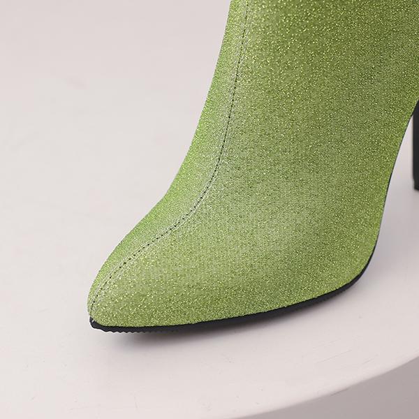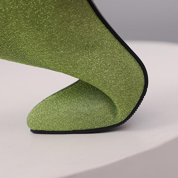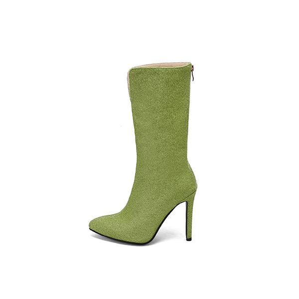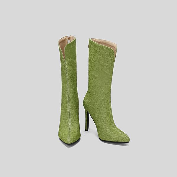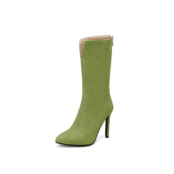 Зеленые и черные женские сапоги до середины икры на высоком каблуке, маленький и большой размер 32 50