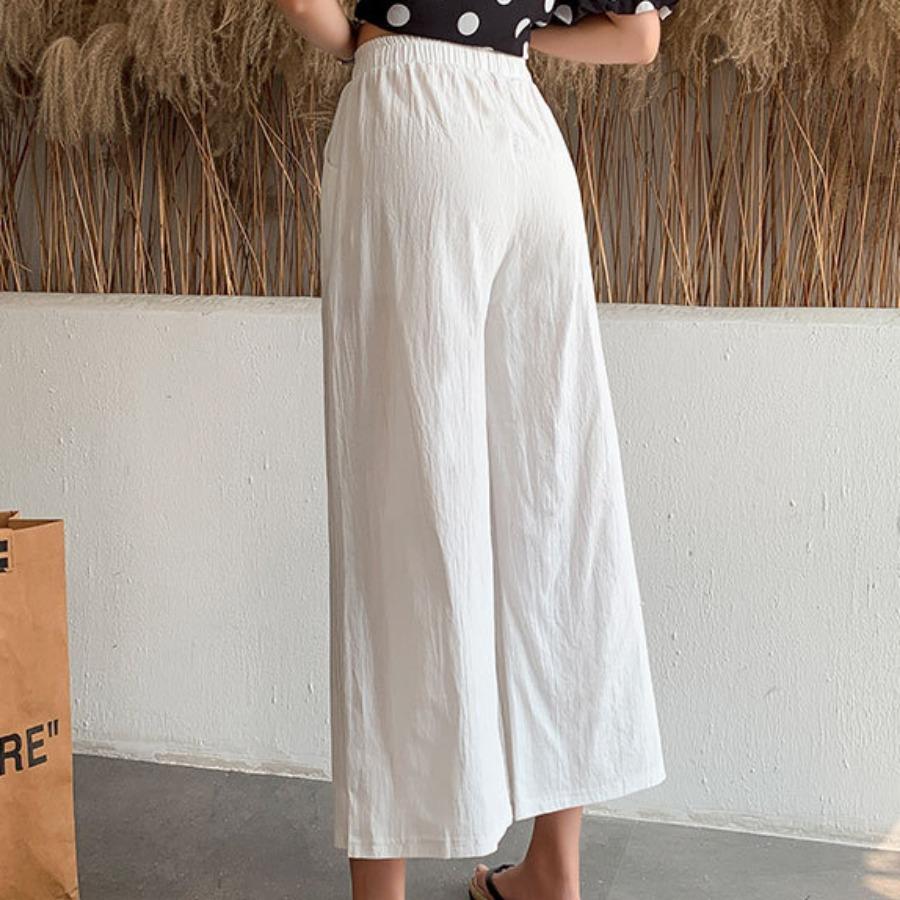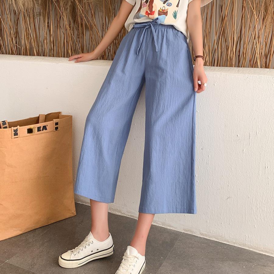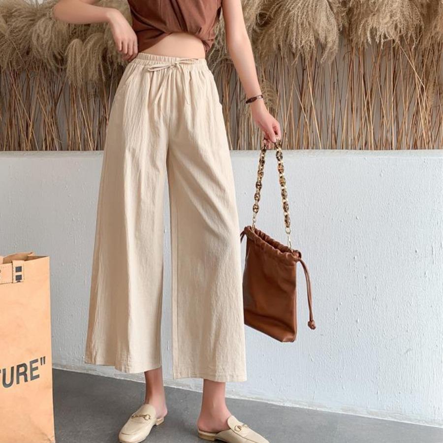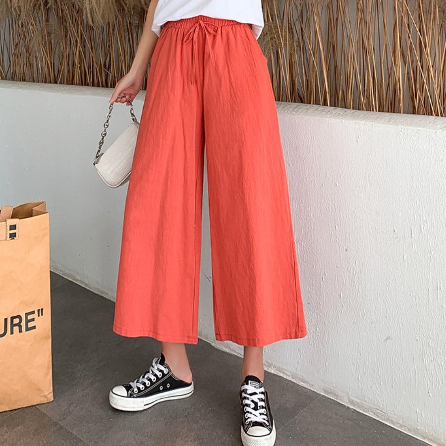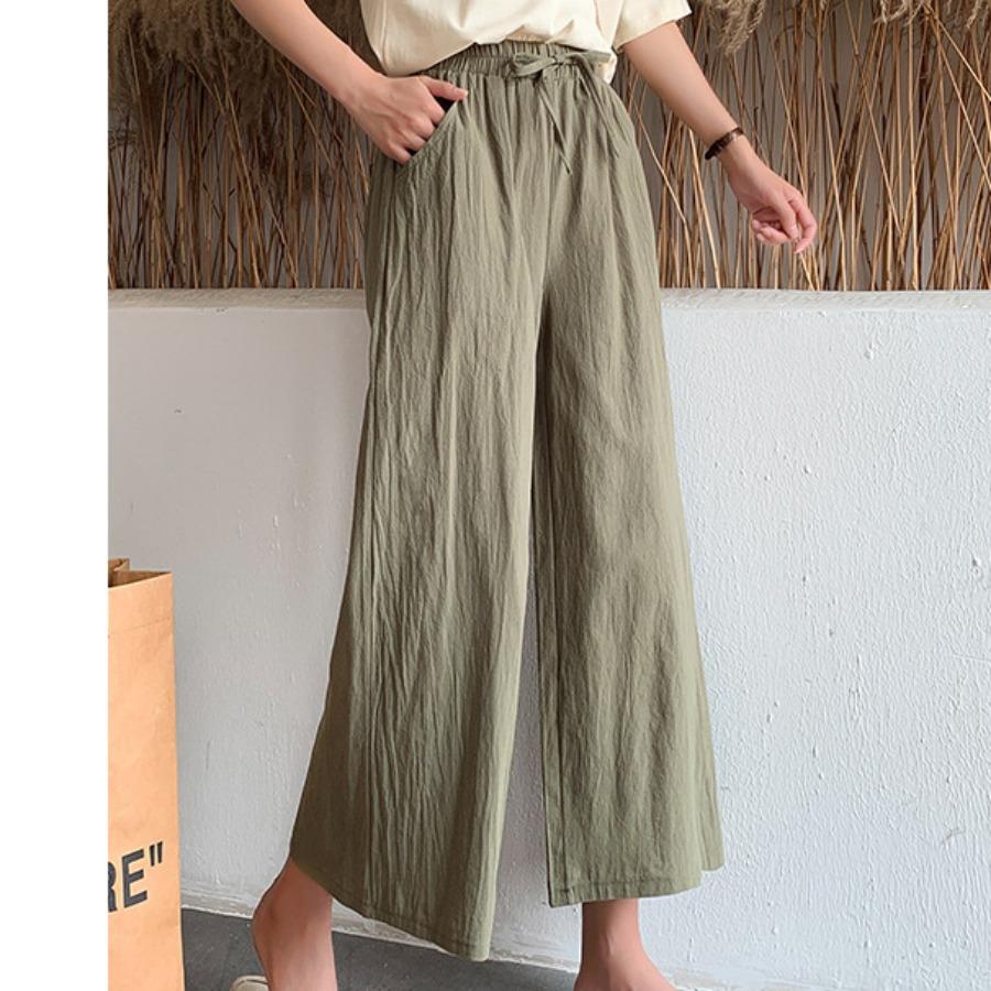 Женские летние осенние хлопковые льняные брюки с высокой талией, однотонные широкие укороченные брюки