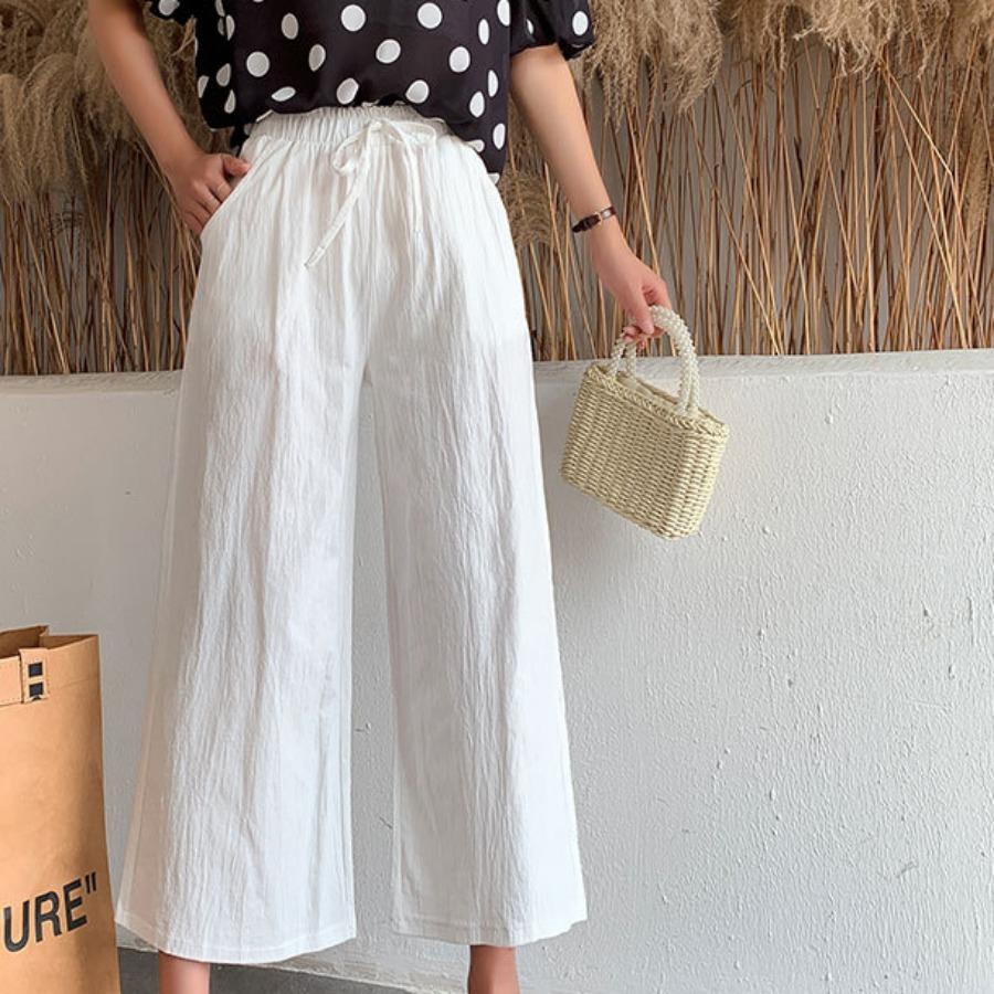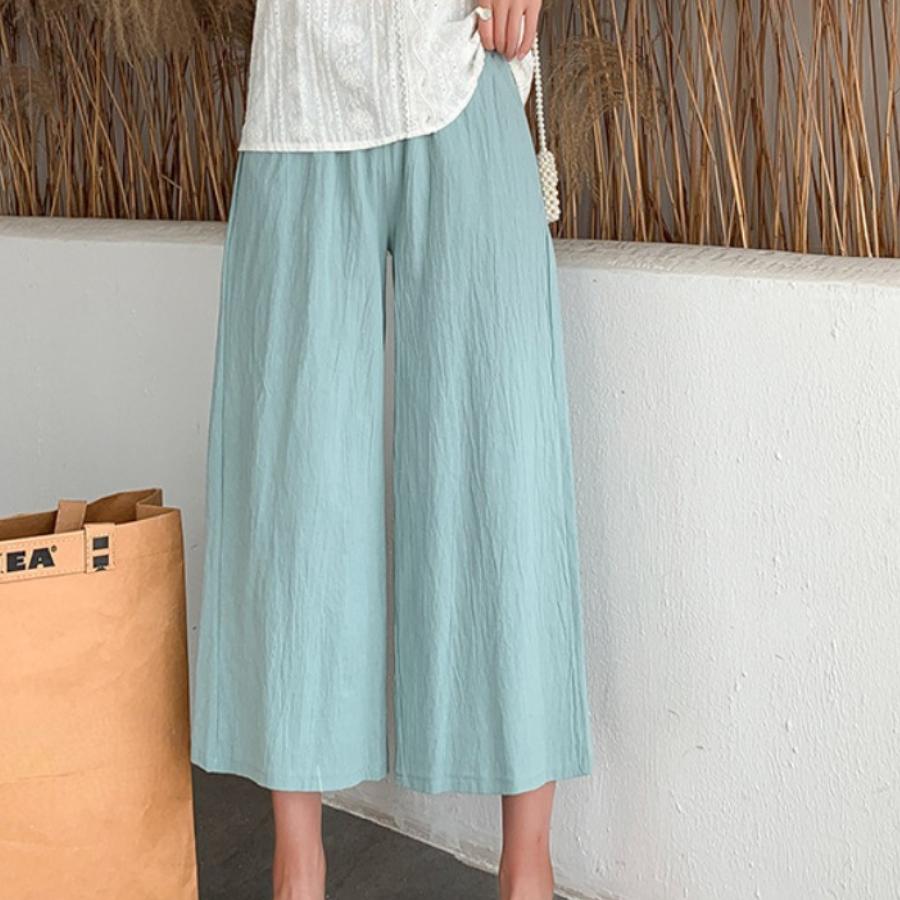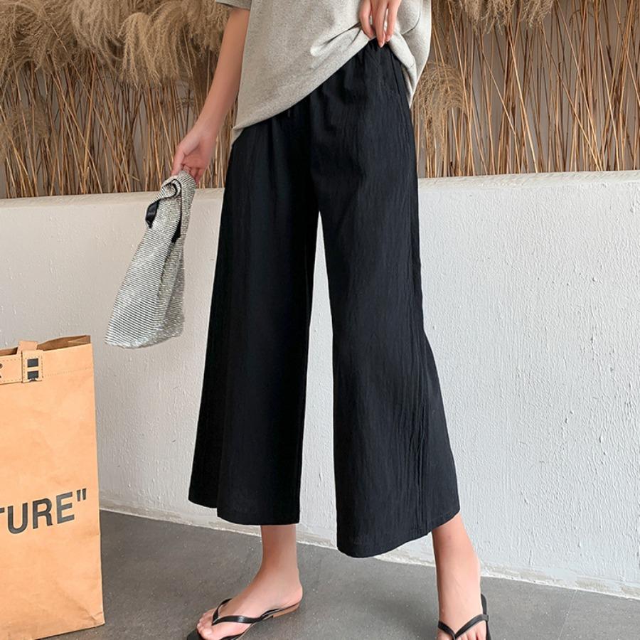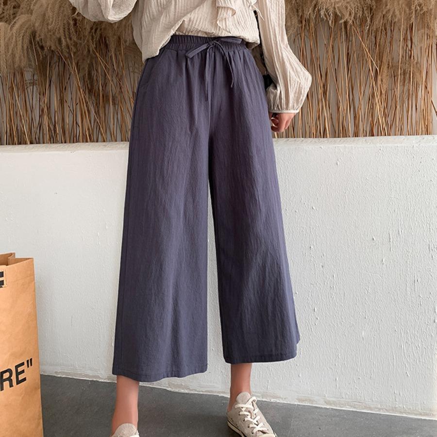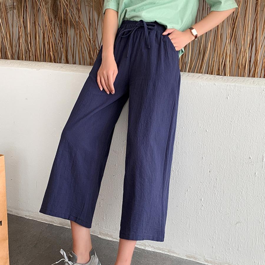 Женские летние осенние хлопковые льняные брюки с высокой талией, однотонные широкие укороченные брюки