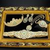 Очень красивый гарнитур, камешки стекло, красиво переливаются. Подвеску можно носить как брошь. Выиграла за один рубль. Спасибо Джум!